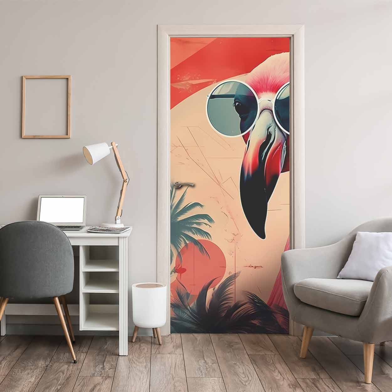 Αυτοκόλλητο Πόρτας Flamingo Retro Style – Decotek 20568