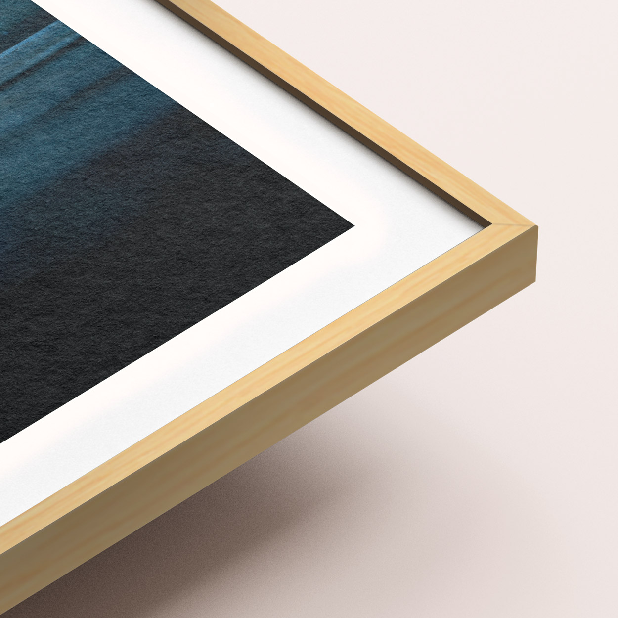 Η Αφίσα εκτυπώνεται με eco μελάνια, σε χαρτί κορυφαίας ποιότητας 200gr. και έχει ένα καταπληκτικό ματ φινίρισμα που ταιριάζει με όλα τα σχέδια της συλλογής μας. Το λευκό περιθώριο (Passpartout) αποτελεί την χάρτινη γέφυρα μεταξύ του έργου και του πλαισίου εστιάζοντας στο θέμα και ομαλοποιεί τη μετάβαση από το κέντρο προς τον ευρύτερο χώρο ενισχύοντας τις διακοσμητικές ιδιότητες του. Η κάθε διάσταση εκτύπωσης έχει και την δική της διάσταση περιθωρίου (Passpartout). Παρακαλώ ανατρέξτε στον πίνακα που αναγράφονται αναλυτικά οι διαστάσεις, ώστε να επιλέξετε αυτό που σας ταιριάζει καλύτερα. Η κορνίζα που χρησιμοποιούμε είναι από ξύλο πεύκου και πάχους 17mm x 17mm, και μπορείτε να επιλέξετε χρώμα ανάμεσα σε λευκό, μαύρο και χρώμα του ξύλου ανοιχτό. To plexiglass στην μπροστά όψη είναι ανθεκτικό και διάφανο στα 2mm, η πλάτη είναι από mdf και στο πίσω μέρος υπάρχει και το μεταλλικό κλιπ κρέμασης.