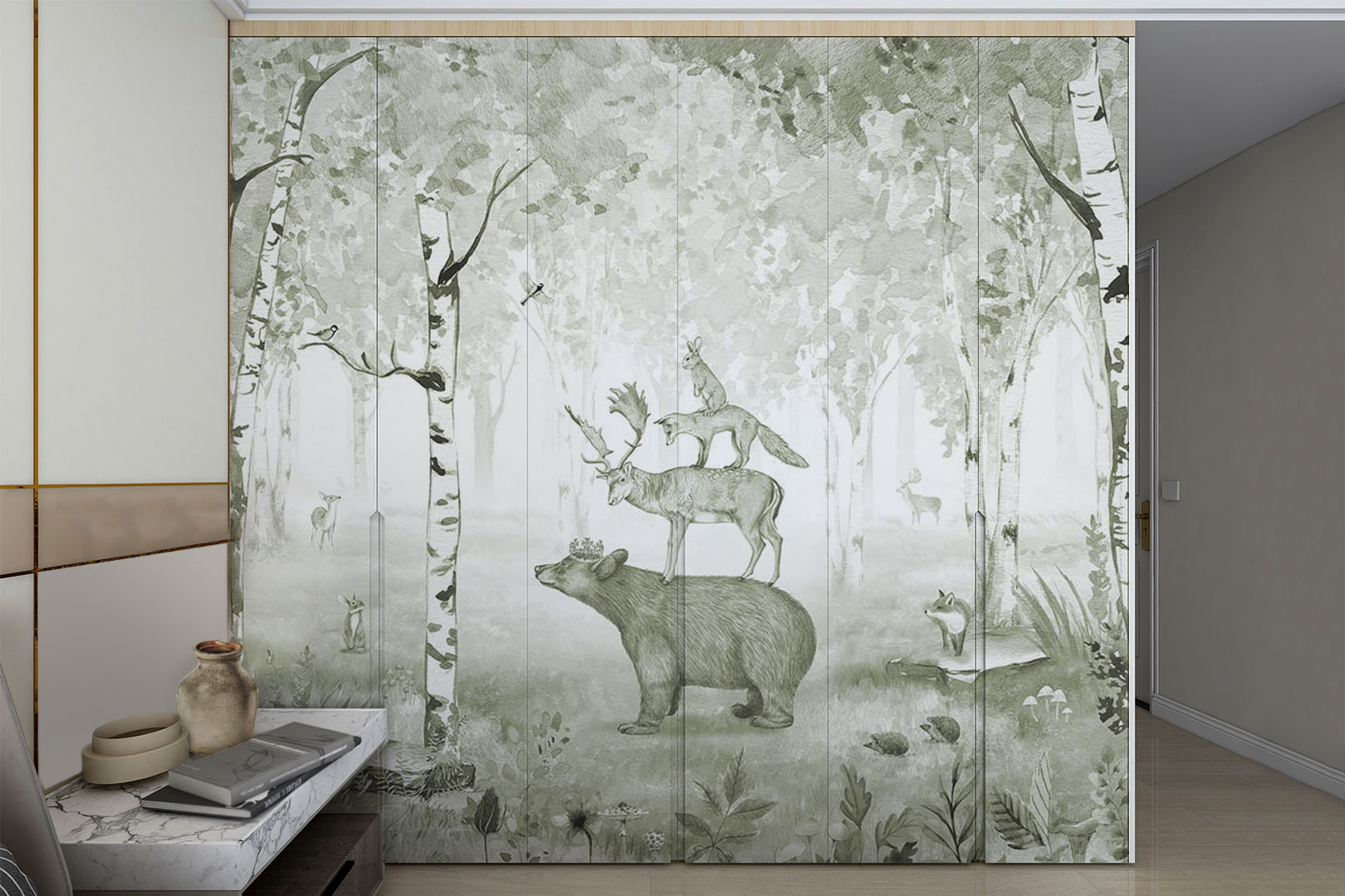 Θα παραλάβετε το αυτοκόλλητο που επιλέξατε σε κομμάτια, προσαρμοσμένα και έτοιμα για κάθε φύλλο της ντουλάπας σας ξεχωριστά.