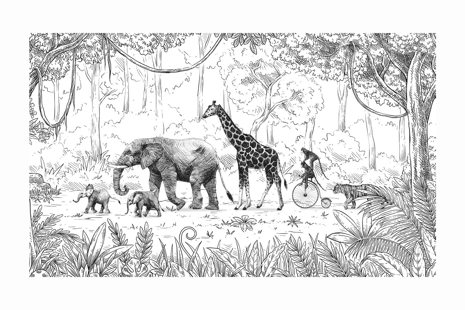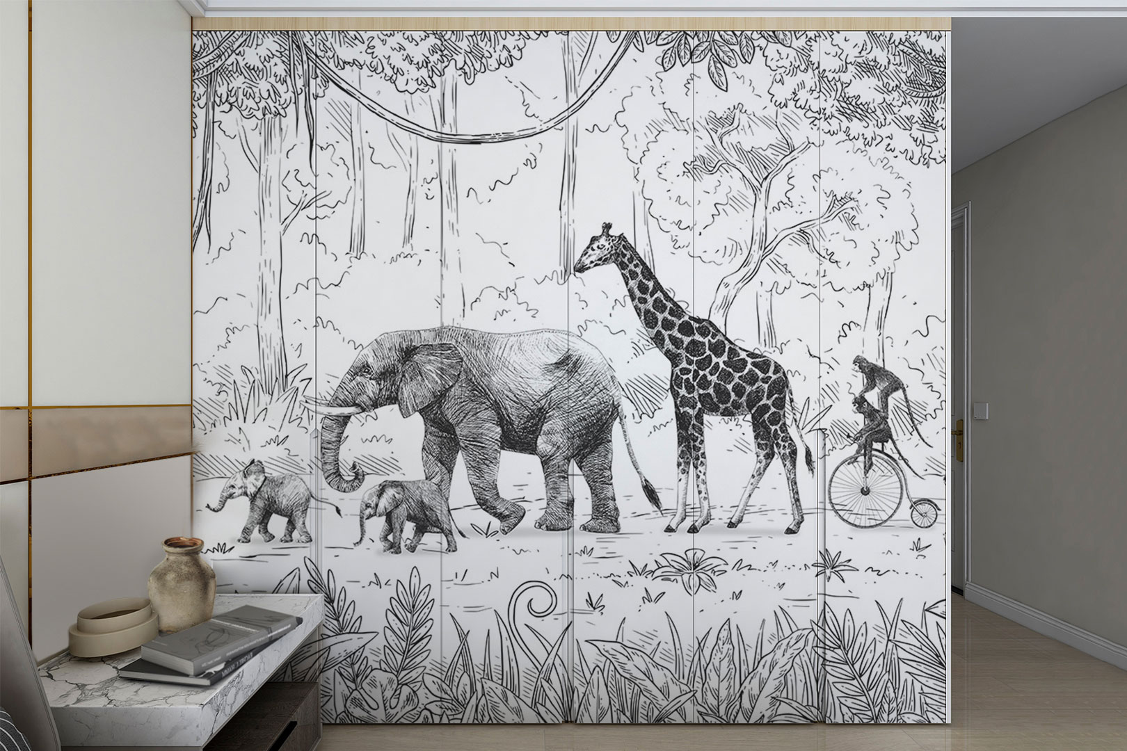 Αυτοκόλλητο Ντουλάπας Παρέλαση στη Ζούγκλα (Ασπρόμαυρο) - Kikki Belle 70361