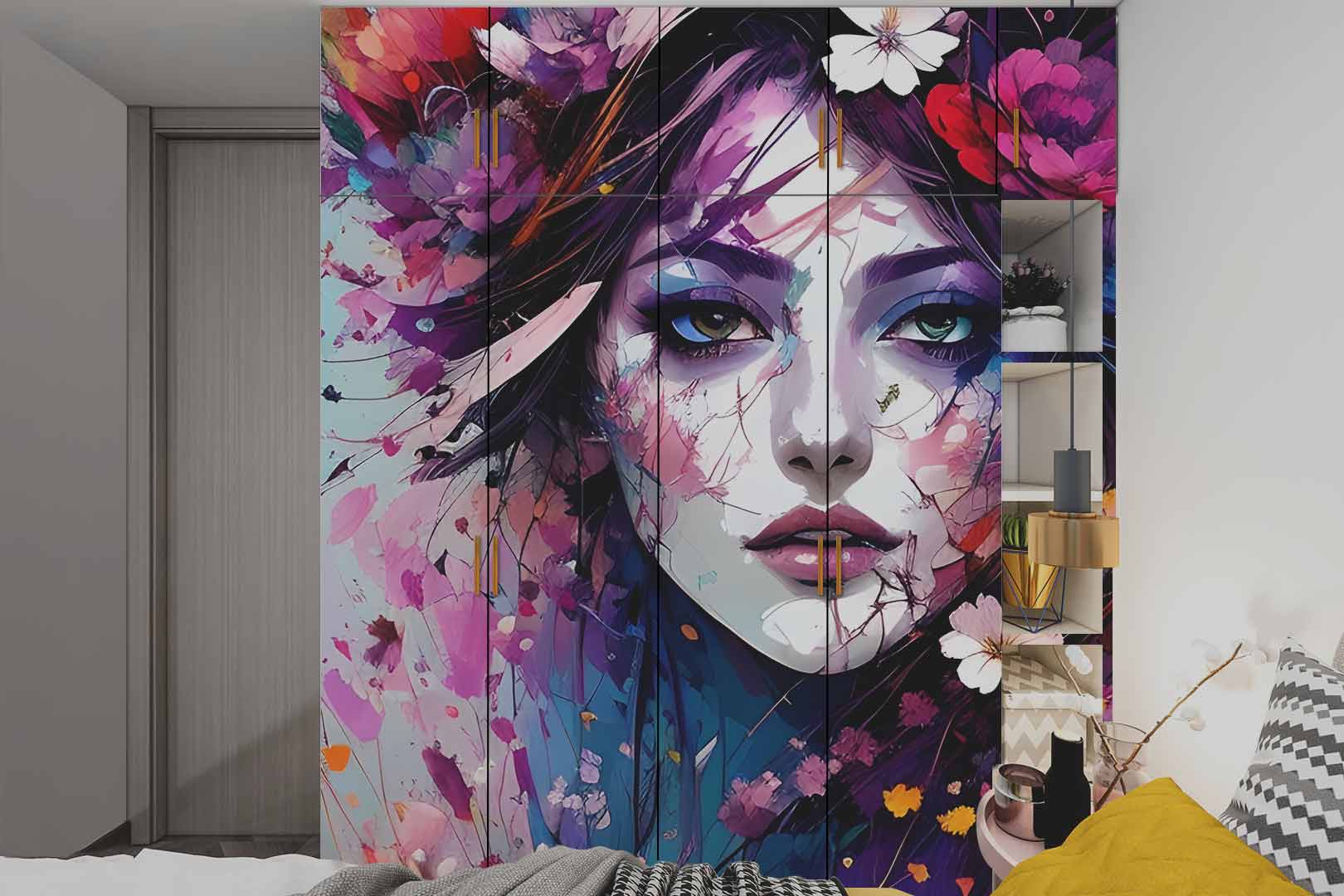 Αυτοκόλλητο Ντουλάπας Woman's Portrait With Flowers - Decotek 70221