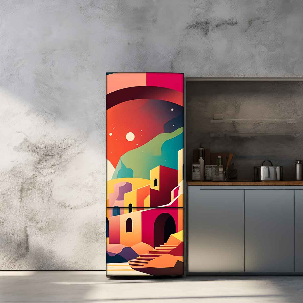 Αυτοκόλλητο Ψυγείου Colorful Small Village – Decotek 28498