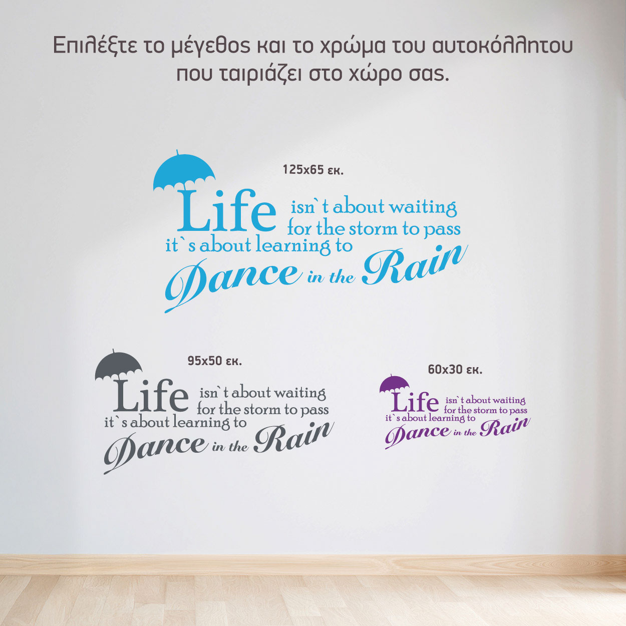 Επιλέξτε το χρώμα και τις διαστάσεις που σας ταιριάζει, με το Αυτοκόλλητο Τοίχου Dance in the Rain θα δώσετε στον χώρο σας μια διαφορετική νότα διακόσμησης που σίγουρα θα εντυπωσιάσει τους φίλους σας.