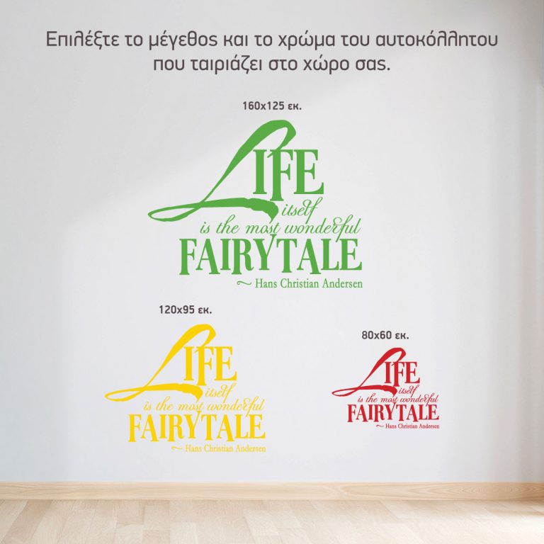 Επιλέξτε το χρώμα και τις διαστάσεις που σας ταιριάζει, με το Αυτοκόλλητο Τοίχου Life is a Fairytale θα δώσετε στον χώρο σας μια διαφορετική νότα διακόσμησης που σίγουρα θα εντυπωσιάσει τους φίλους σας.