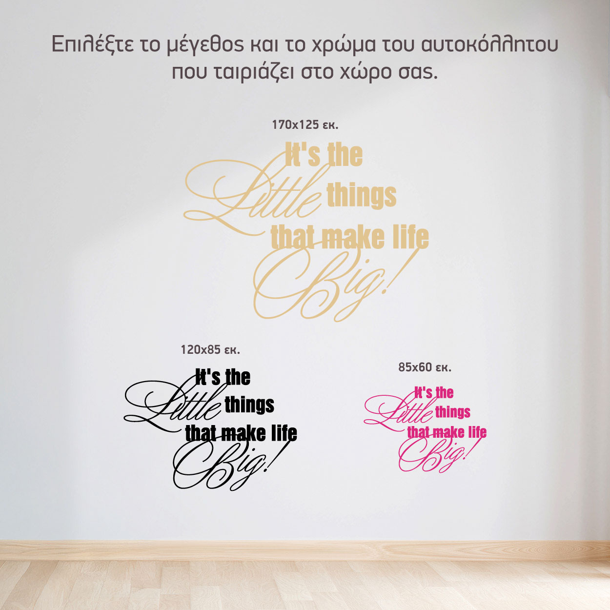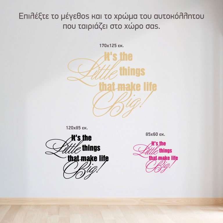 Επιλέξτε το χρώμα και τις διαστάσεις που σας ταιριάζει, με το Αυτοκόλλητο Τοίχου Little Things θα δώσετε στον χώρο σας μια διαφορετική νότα διακόσμησης που σίγουρα θα εντυπωσιάσει τους φίλους σας.