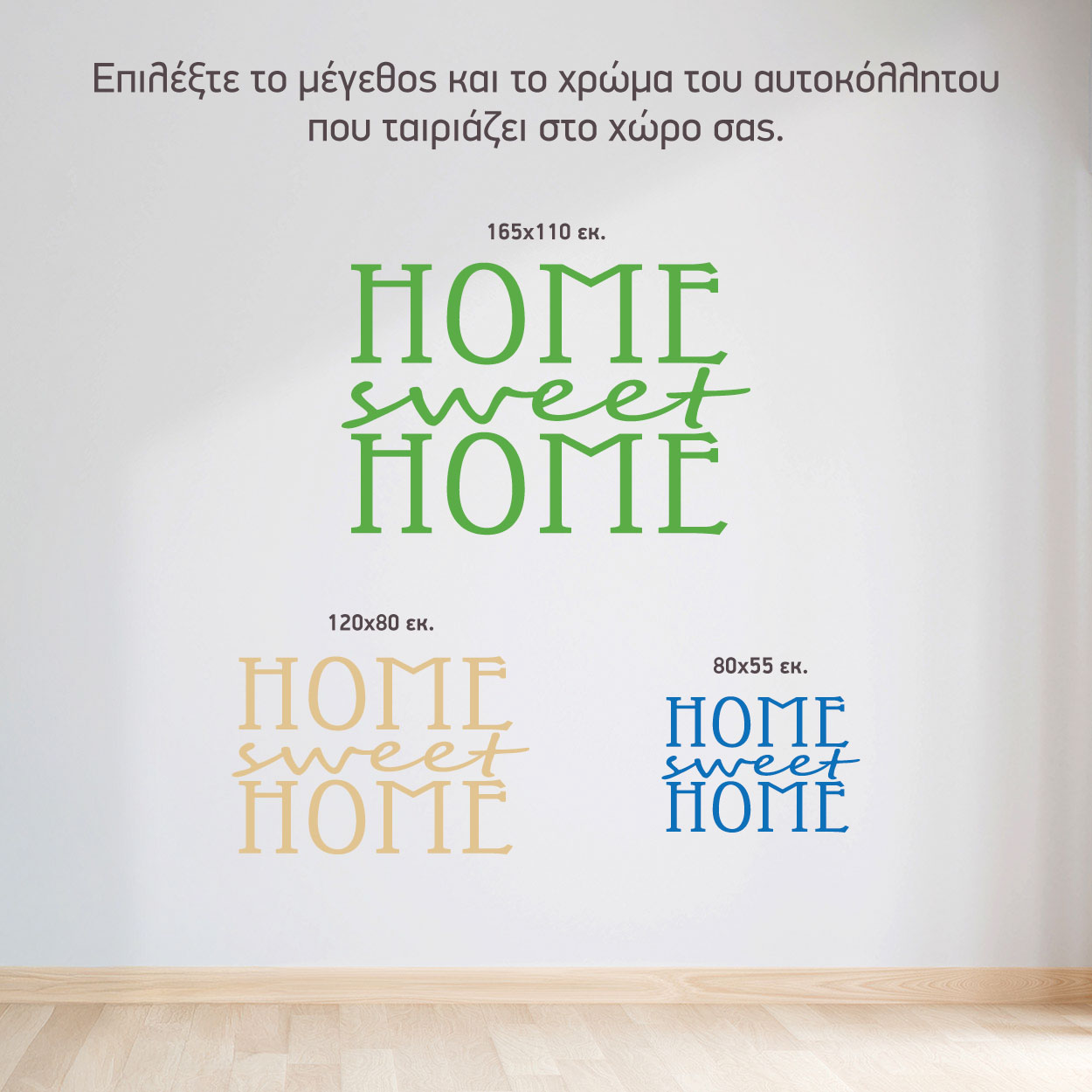 Επιλέξτε το χρώμα και τις διαστάσεις που σας ταιριάζει, με το Αυτοκόλλητο Τοίχου Sweet Home θα δώσετε στον χώρο σας μια διαφορετική νότα διακόσμησης που σίγουρα θα εντυπωσιάσει τους φίλους σας.