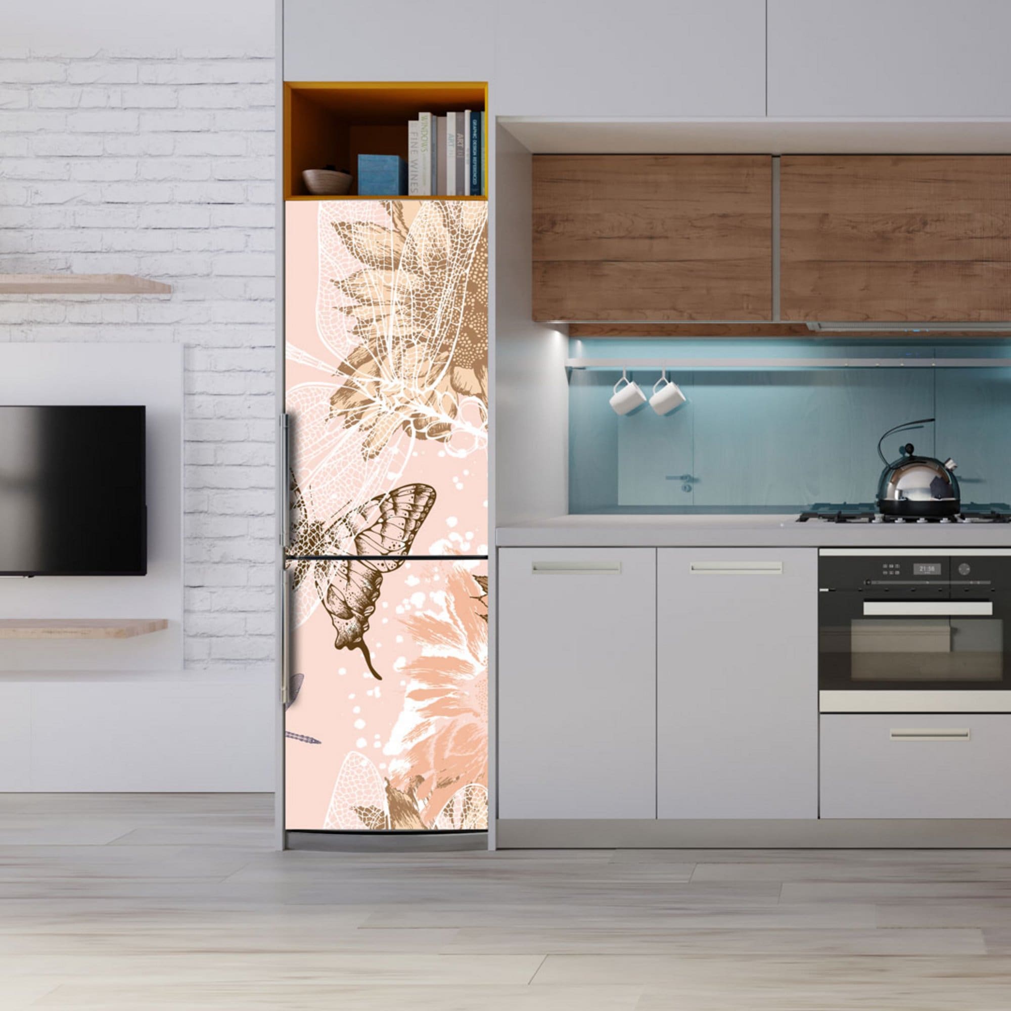 Αυτοκόλλητο Ψυγείου Πεταλούδα και Άνθη – Decotek 20356