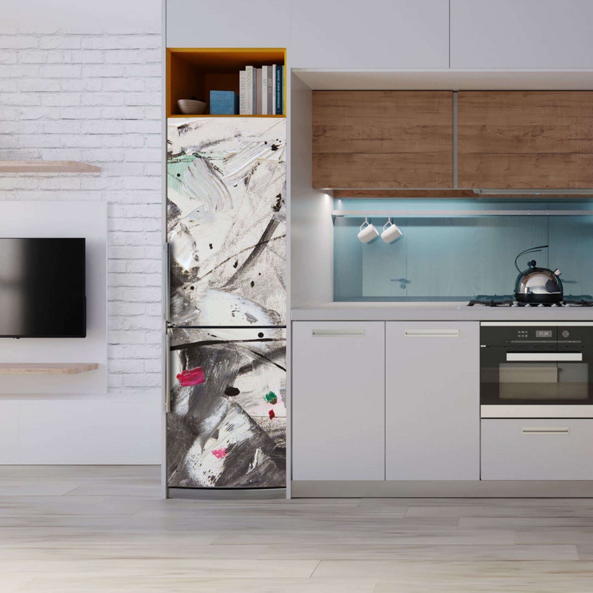 Αυτοκόλλητο Ψυγείου Γκρι και Λευκό Αφηρημένο – Decotek 20376