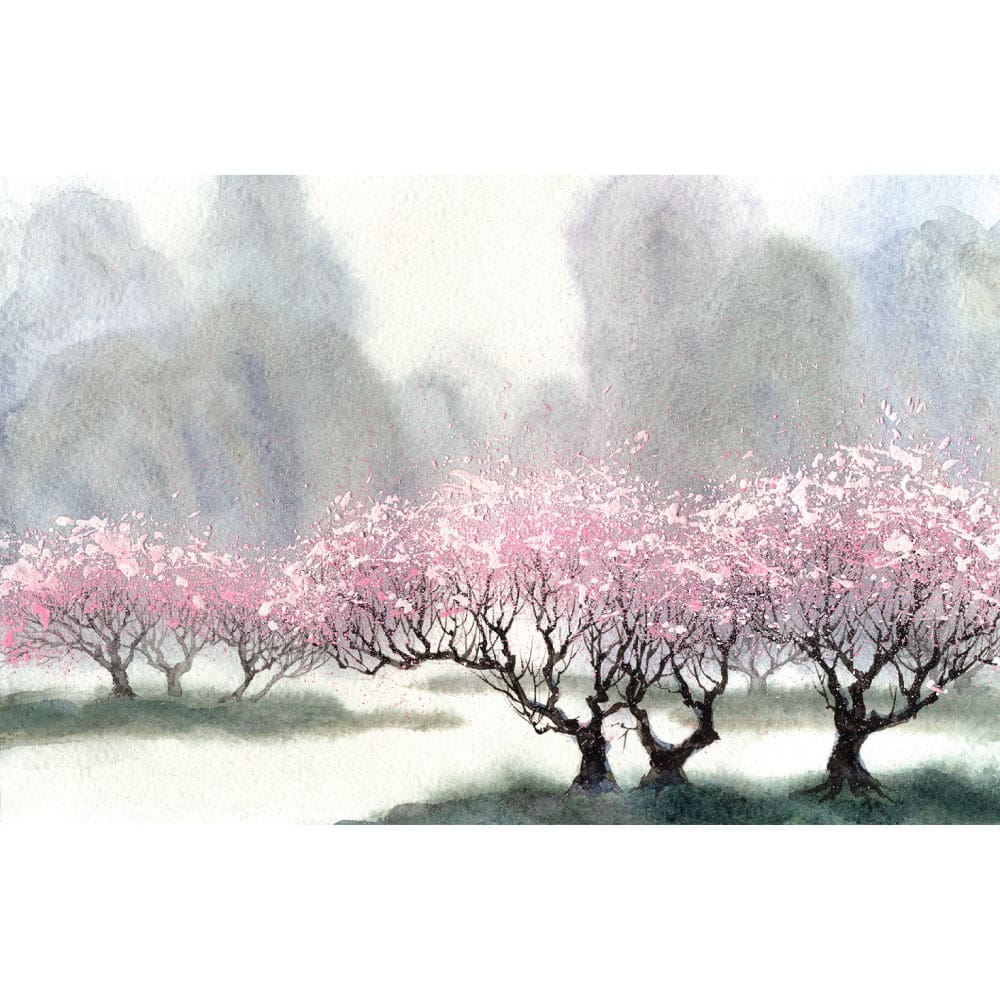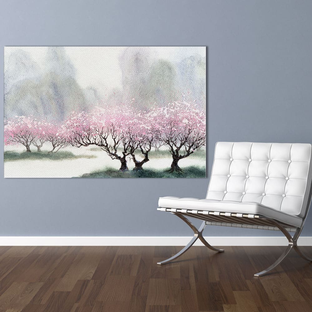 Πίνακας Ζωγραφικής σε καμβά, με ιδιαίτερα ζωγραφισμένα, ανθησμένα δέντρα.
