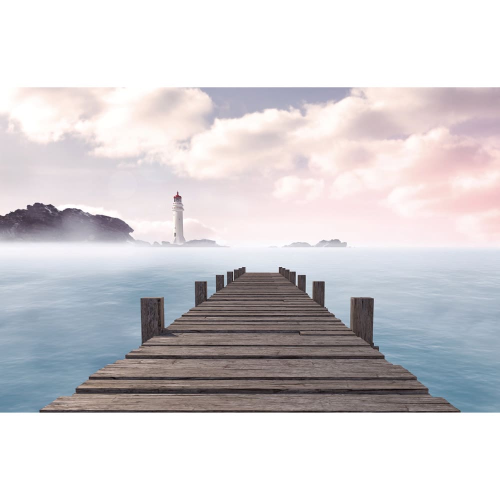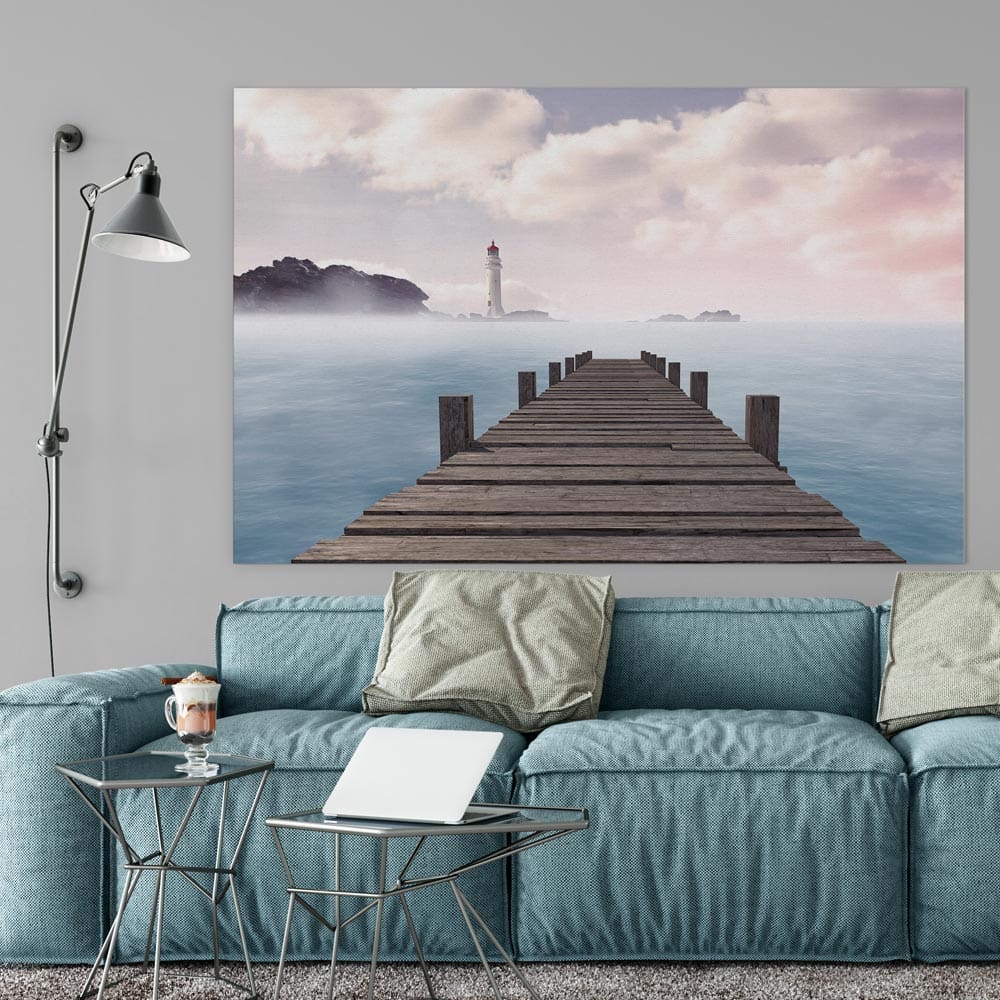Πίνακας Ζωγραφικής σε καμβά ξύλινη αποβάθρα και ένας φάρος στο βάθος.