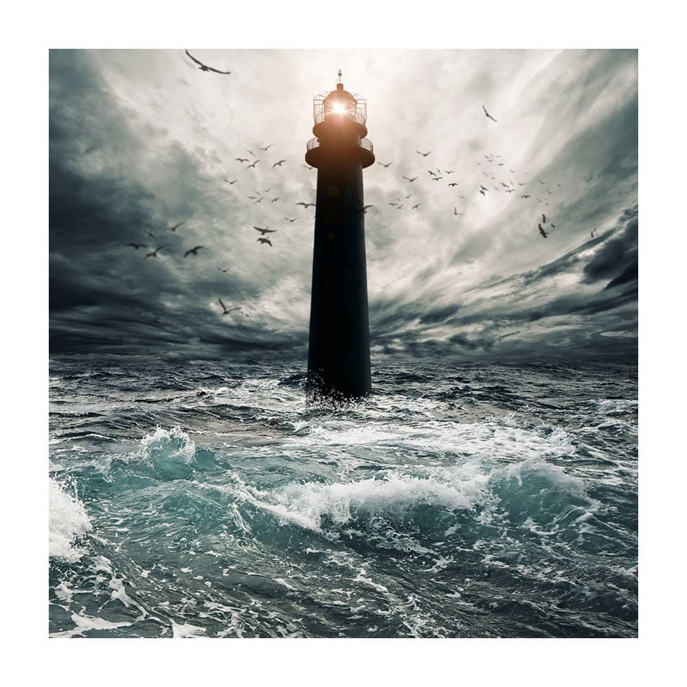 Πίνακας Ζωγραφικής σε καμβά συννεφιασμένος ουρανός και φουρτουνιασμένη θάλασσα γύρω από φάρο.