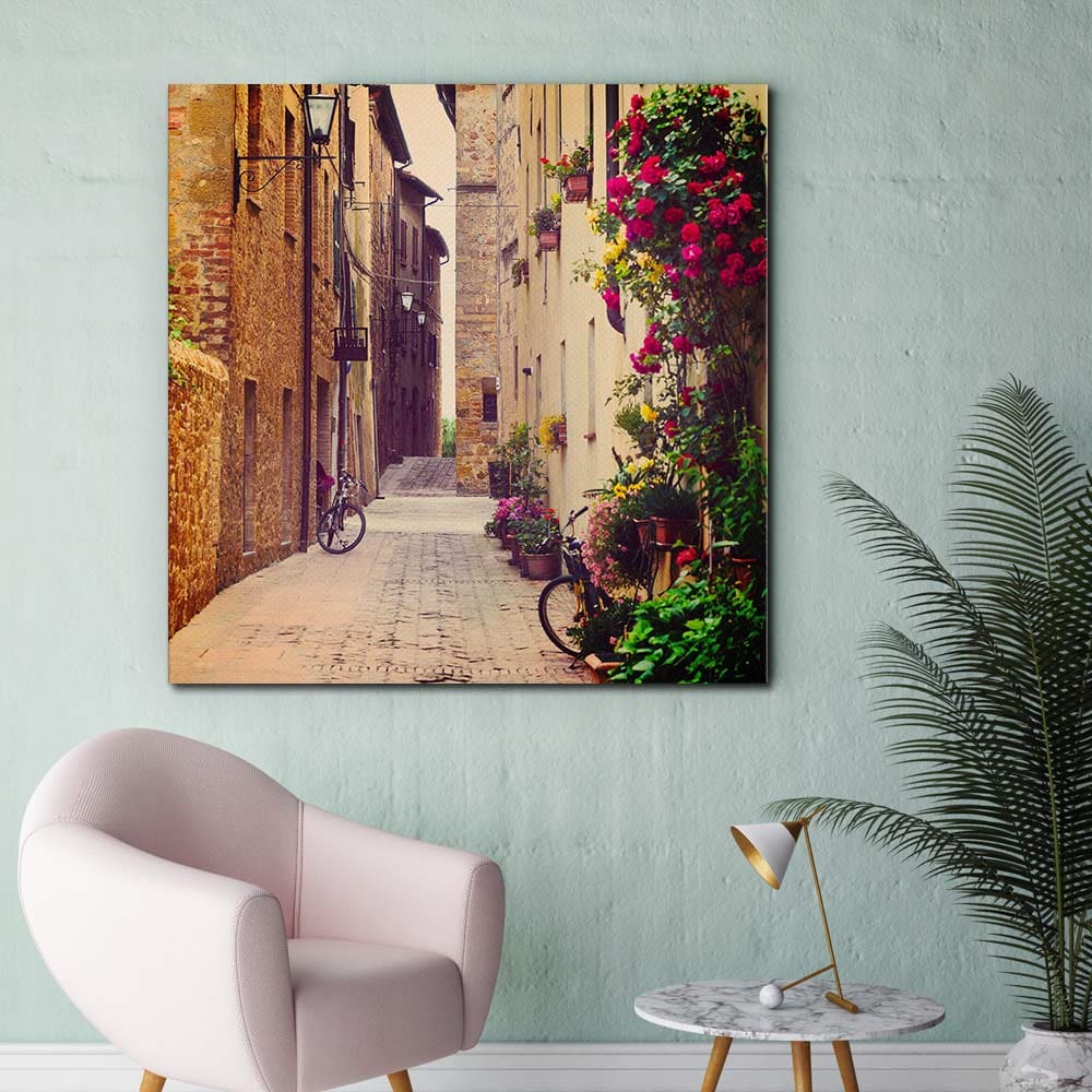 Πίνακας Ζωγραφικής σε καμβά γραφικό δρομάκι μέσα απο την επαρχιακή πόλη της Ιταλίας.