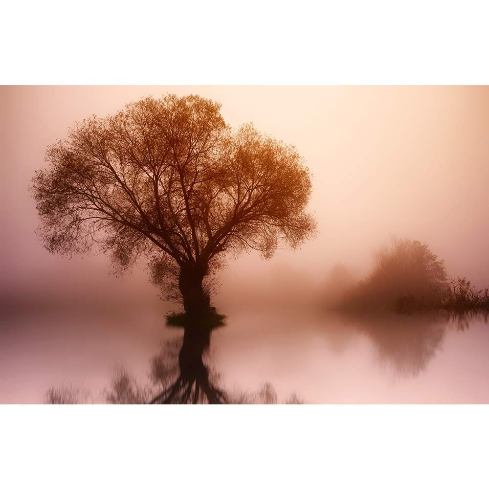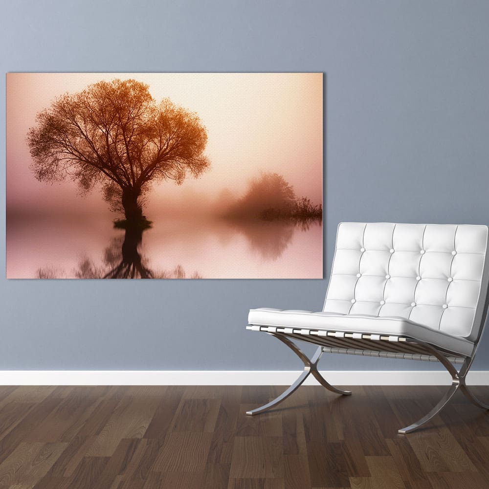 Πίνακας Ζωγραφικής σε καμβά δέντρο στο κέντρο της λίμνης μέσα σε ομιχλώδης τοπίο.