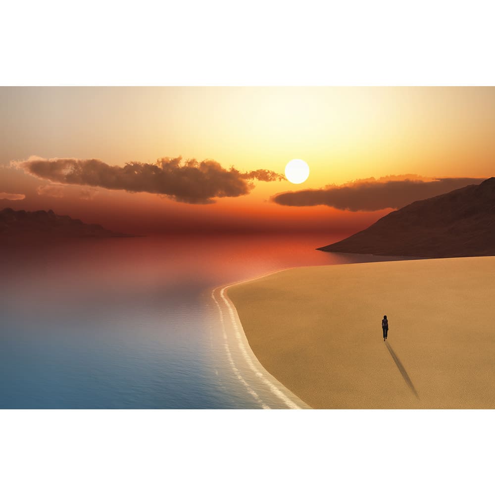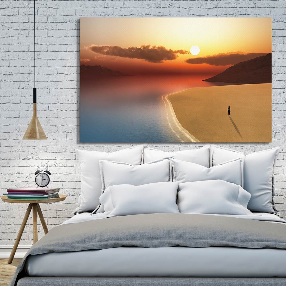 Πίνακας Ζωγραφικής σε καμβά περπατώντας σε παραλιακό τοπίο μέσα στο ηλιοβασίλεμα.