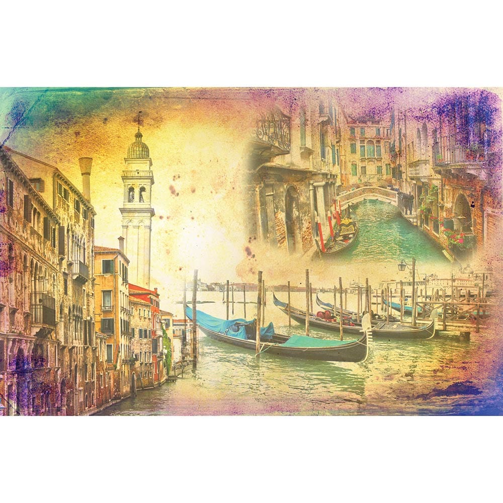 Πίνακας Ζωγραφικής σε καμβά κολάζ με γόνδολές και τα μοναδικά κανάλια της Βενετίας