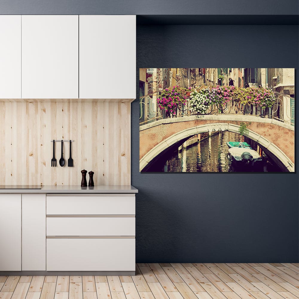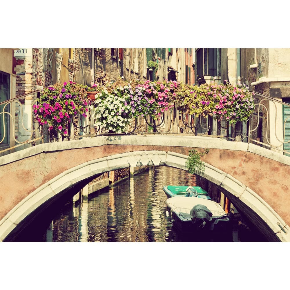 Πίνακας Ζωγραφικής σε καμβά λουλούδια πάνω σε γέφυρα στα κανάλια της Βενετίας.