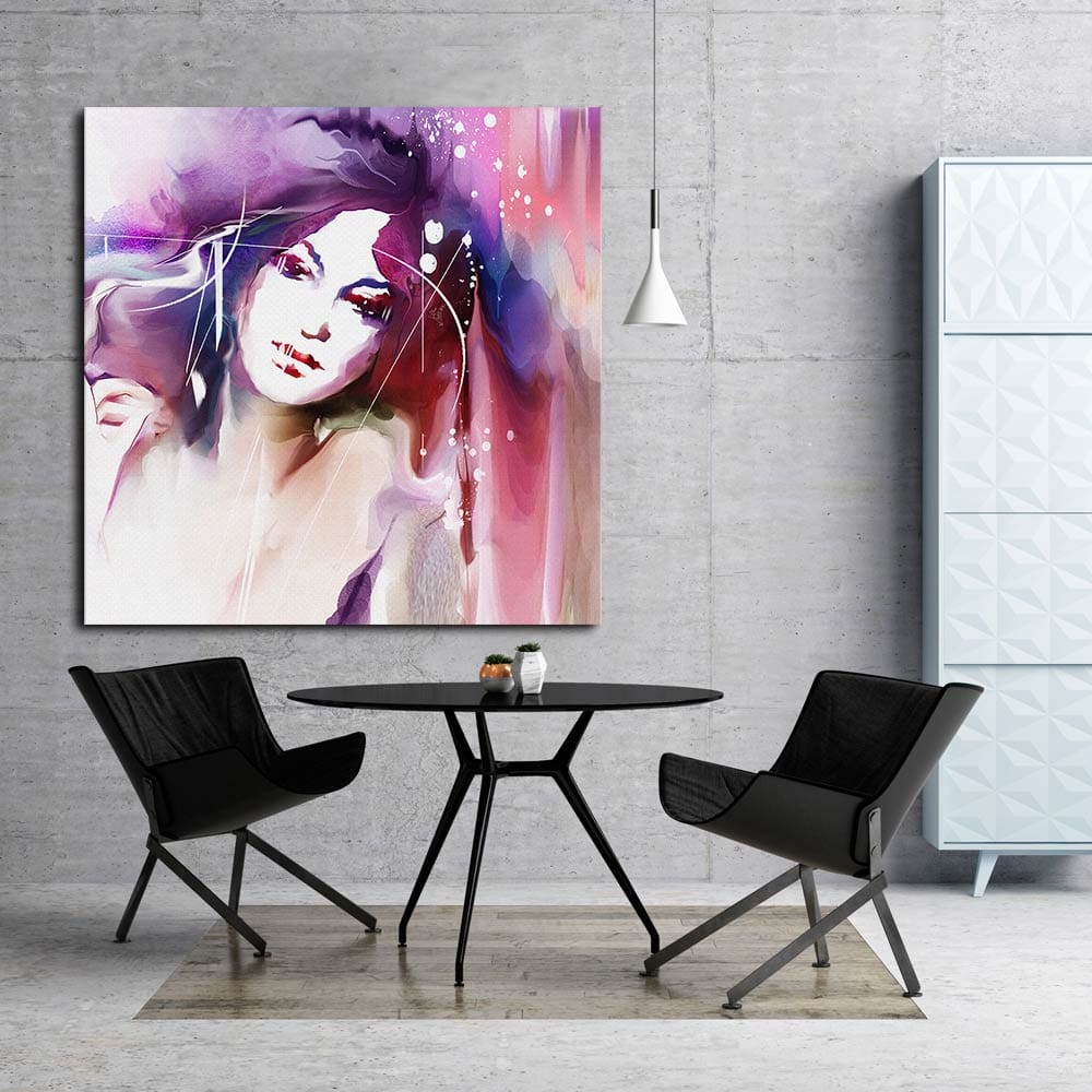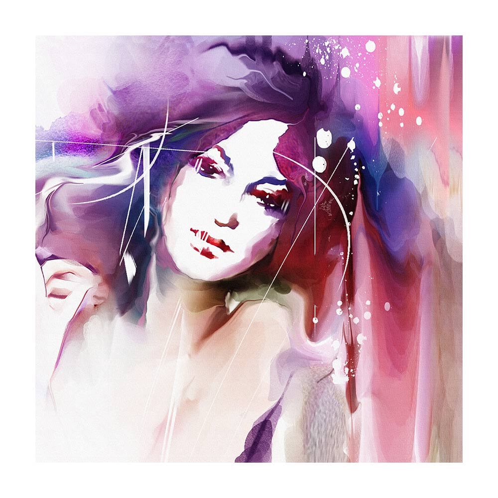 Πίνακας Ζωγραφικής σε καμβά γυναικείο πορτραίτο με ιδιαίτερο μωβ στεφάνι.