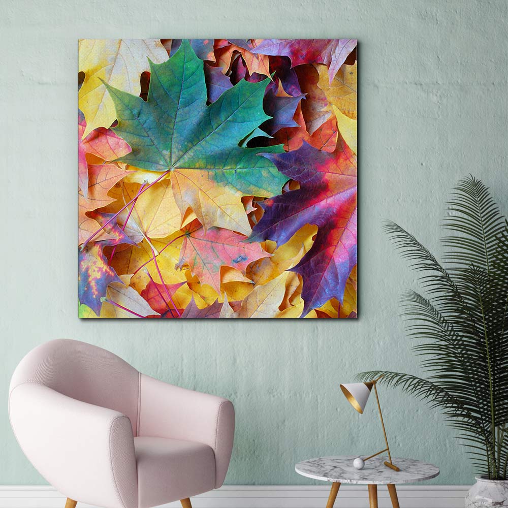 Πίνακας Ζωγραφικής σε καμβά πολύχρωμα αποξηραμένα φύλλα.