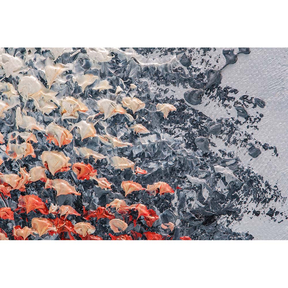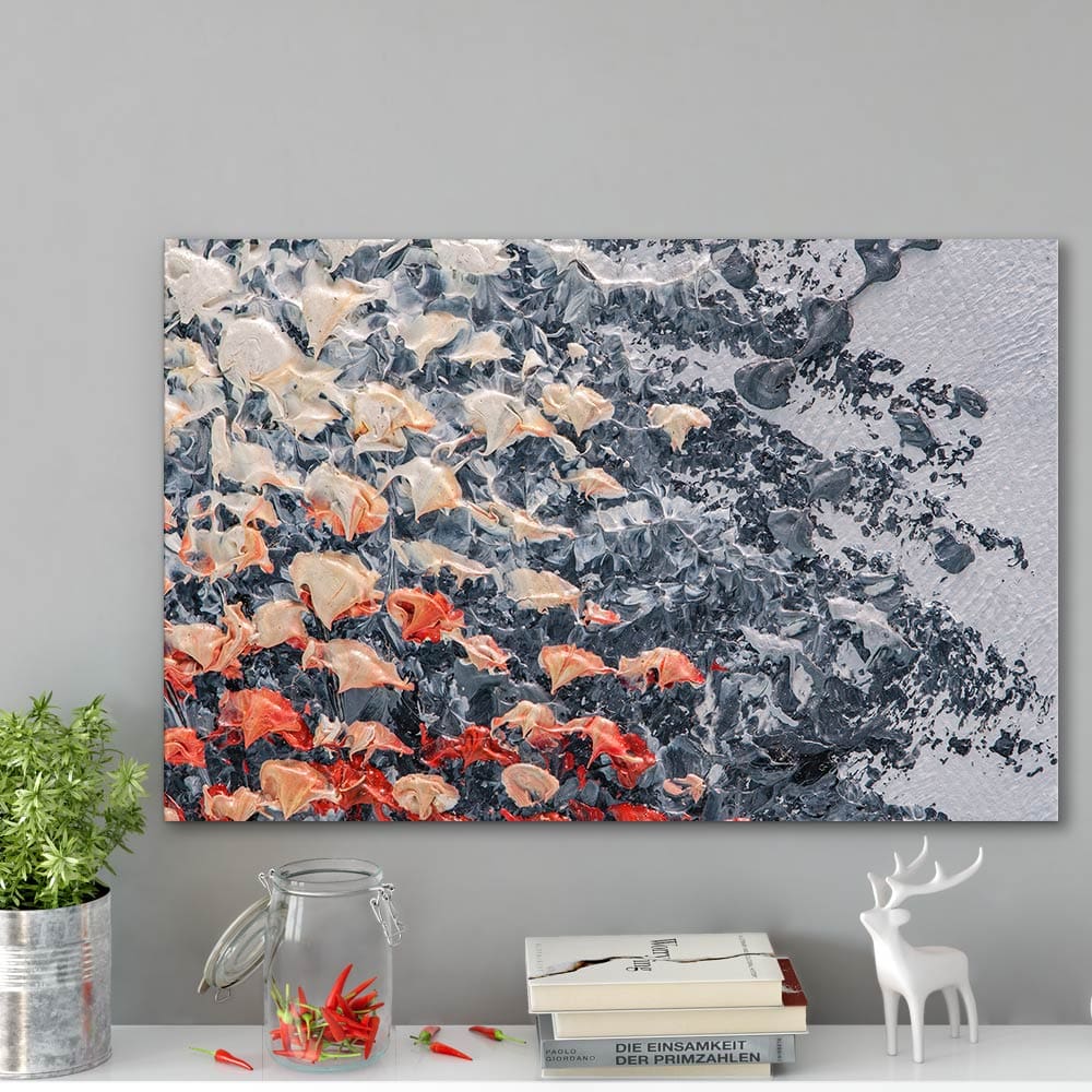 Πίνακας Ζωγραφικής σε καμβά λουλούδια σε αφηρημένο σχέδιο με κόκκινο, πορτοκαλί και λευκό χρώμα.