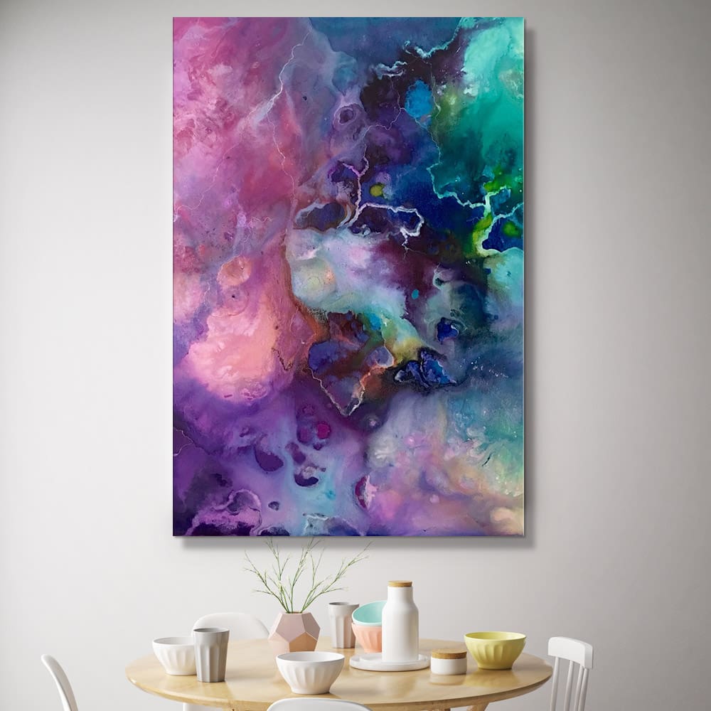 Πίνακας Ζωγραφικής σε καμβά αφηρημένο σχέδιο με αποχρώσεις ουράνιου τόξου.