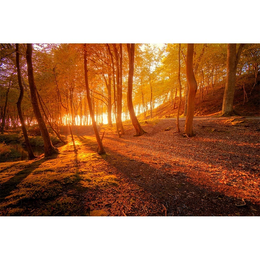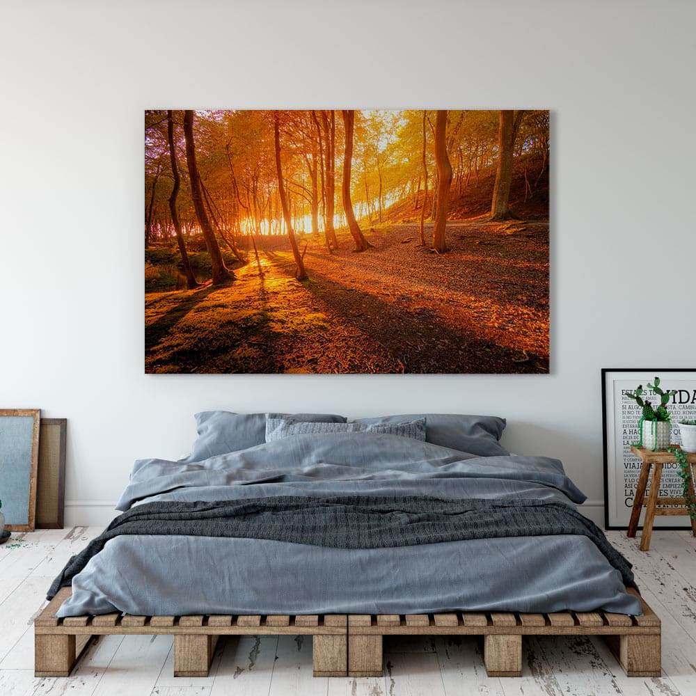Πίνακας Ζωγραφικής σε καμβά φθηνοπωρινή εικόνα με υπέροχο ηλιοβασίλεμα ανάμεσα από την πυκνή εικόνα του δάσους.