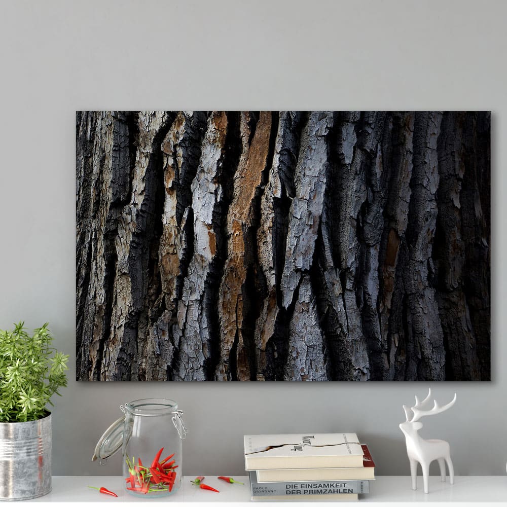 Πίνακας Ζωγραφικής σε καμβά φλοιός δέντρου σε σκούρες γκρι και καφέ αποχρώσεις.