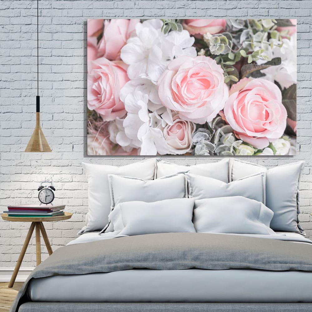 Πίνακας Ζωγραφικής σε καμβά μπουκέτο λουλουδιών σε παστέλ αποχρώσεις.