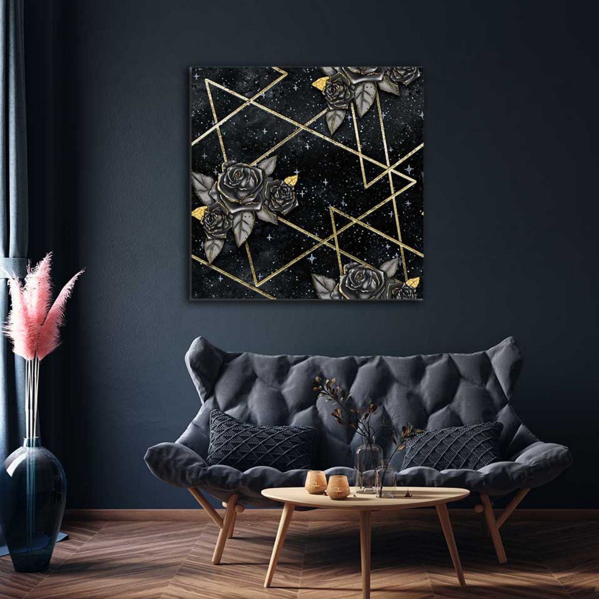 Πίνακας Ζωγραφικής Χρυσά Τρίγωνα και Μαυρά Τριαντάφυλλα - Decotek 220427