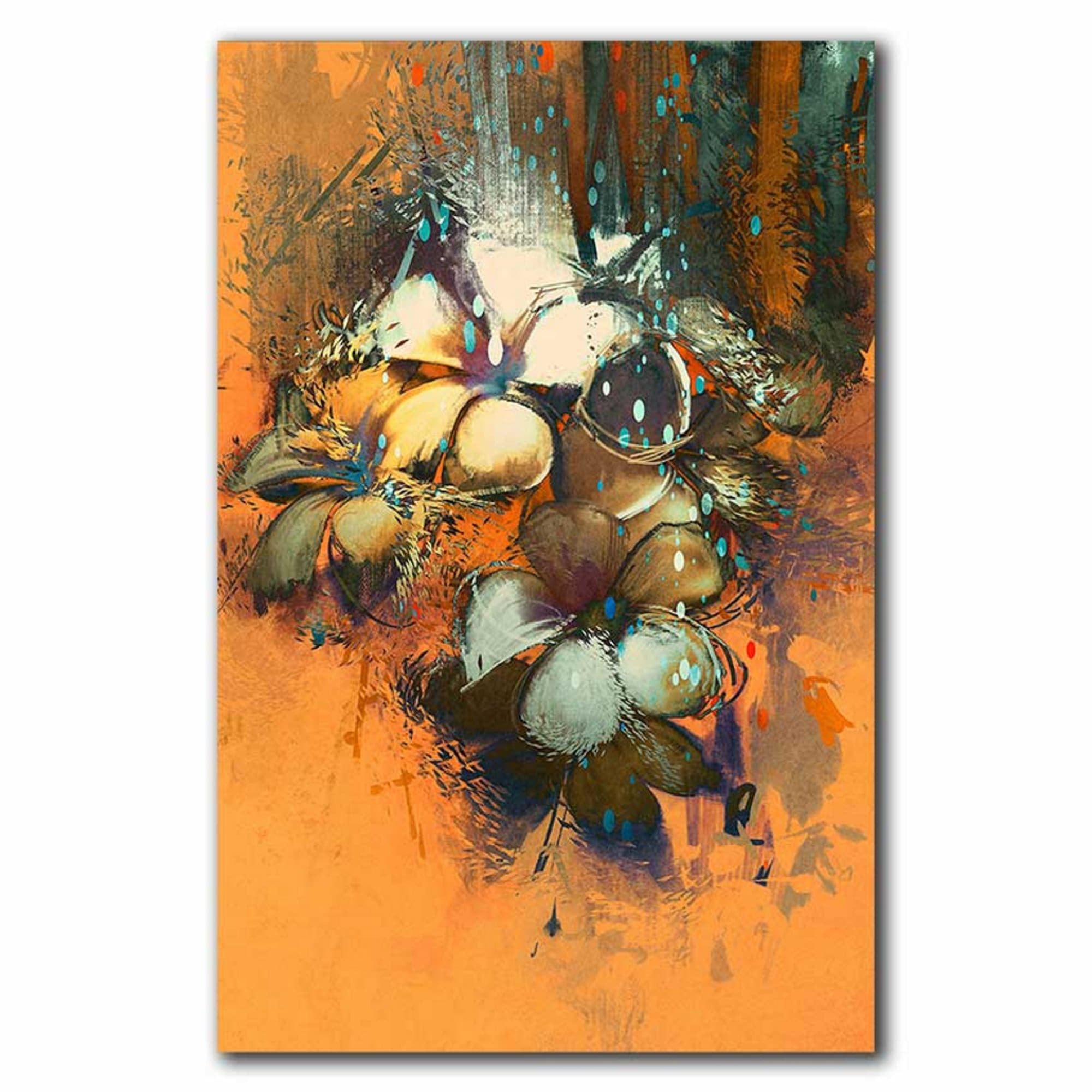 Πίνακας Ζωγραφικής Λουλούδια σε Πορτοκαλί Φόντο - Decotek 220456