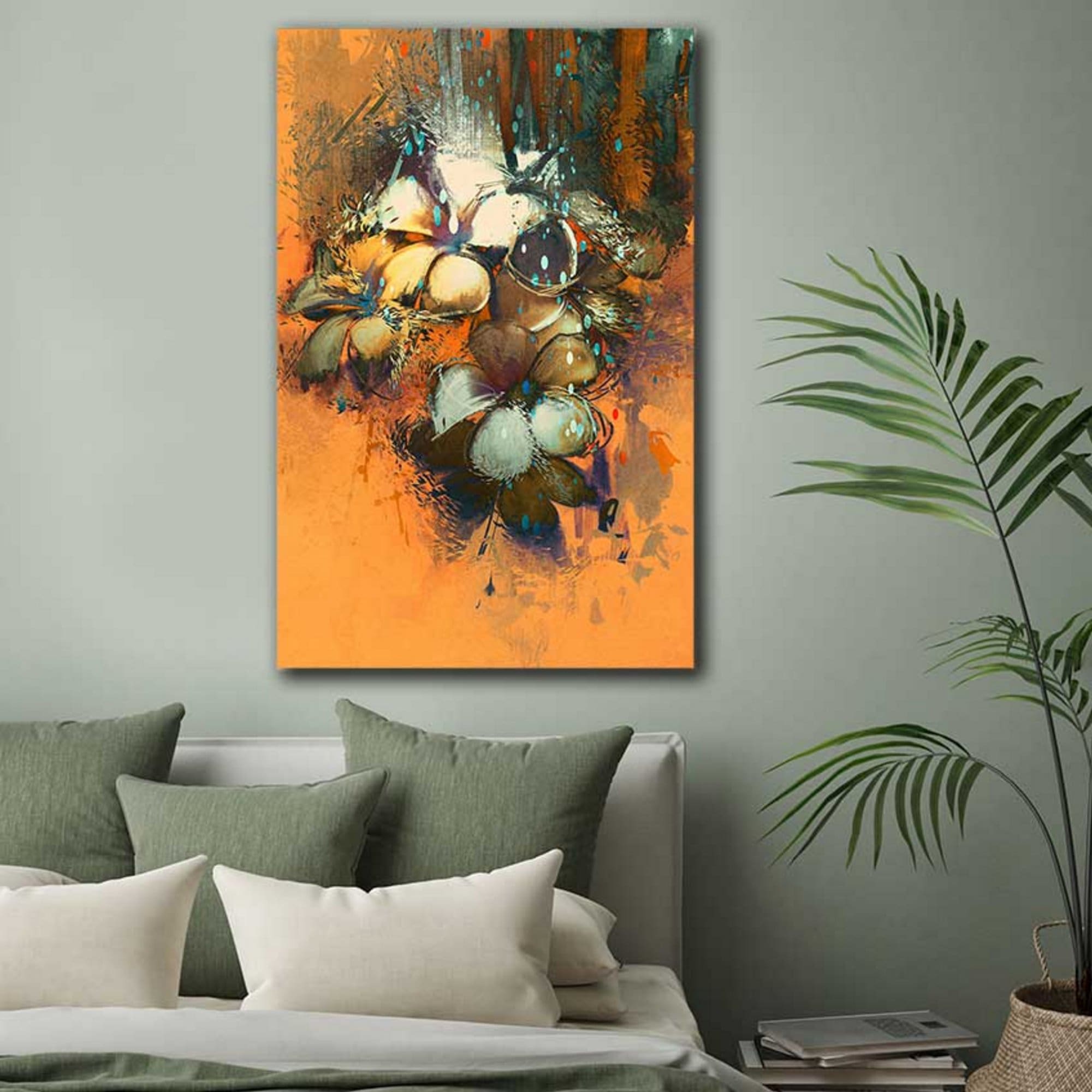 Πίνακας Ζωγραφικής Λουλούδια σε Πορτοκαλί Φόντο – Decotek 220456