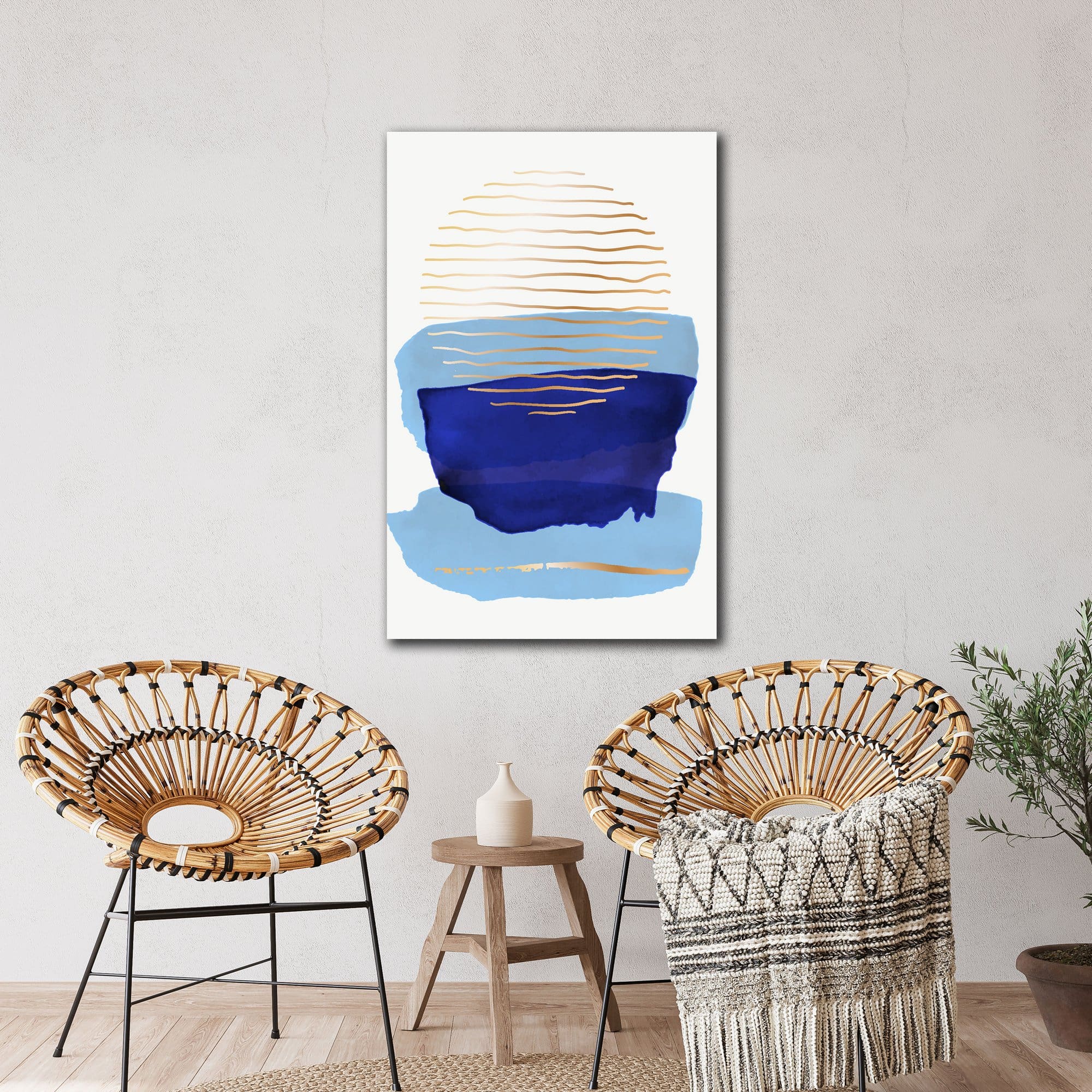 Πίνακας Ζωγραφικής Μίνιμαλ Χρυσό και Μπλε Μοτίβο – Decotek 220508