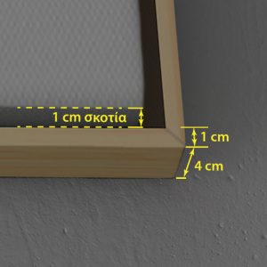 Το πίσω μέρος της κορνίζας όπου το ξύλο σκιάζει το περιθώριο του καμβά ονομάζεται “σκοτία” και είναι 1 cm.