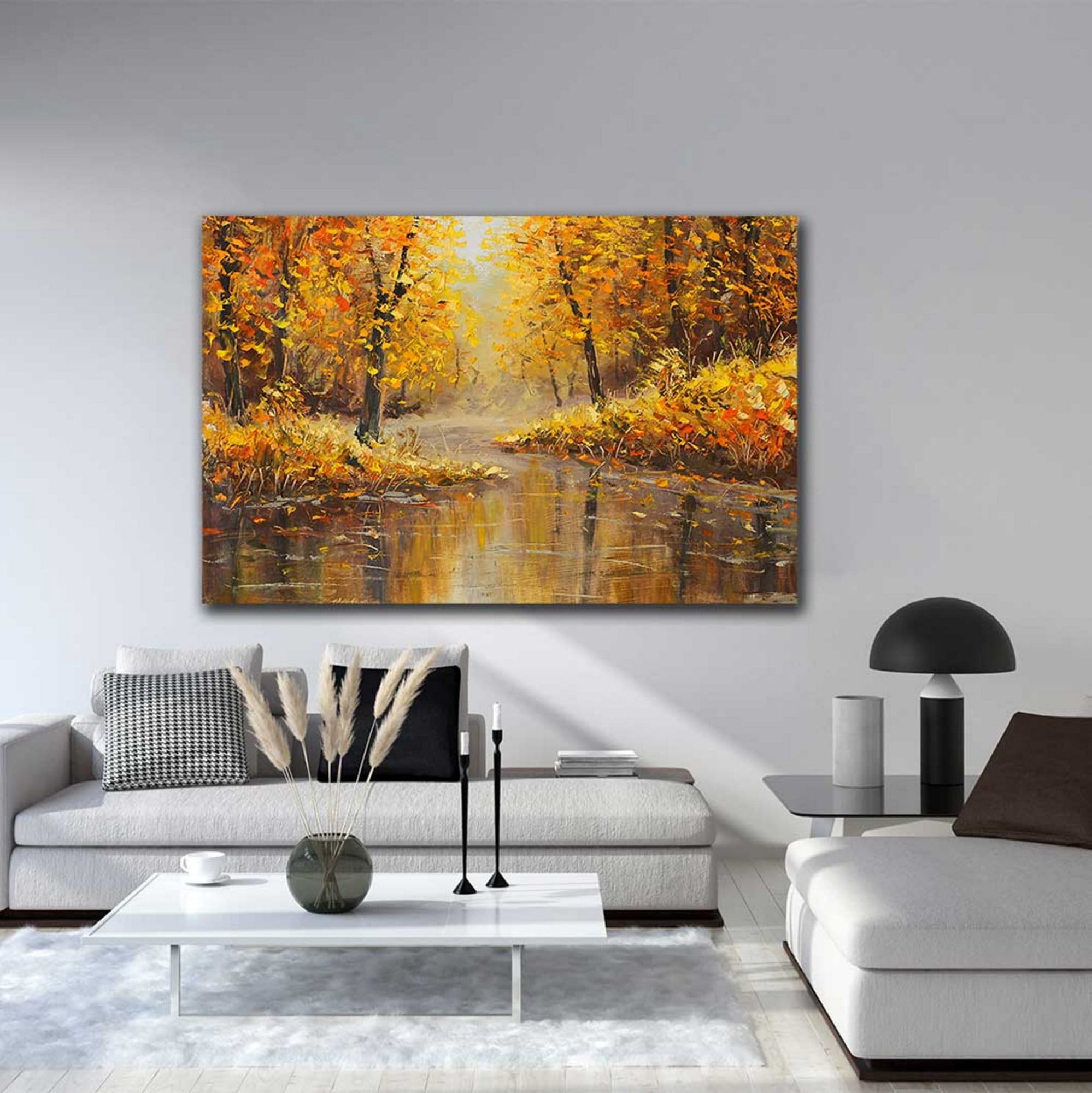 Οι πίνακες ζωγραφικής με διάφορα θέματα, αλλά και γνωστών ζωγράφων, μπορούν να ταιριάξουν εύκολα στο χώρο σας, όπως και ο Πίνακας Ζωγραφικής Φθινόπωρο στο Δάσος – Decotek 220636