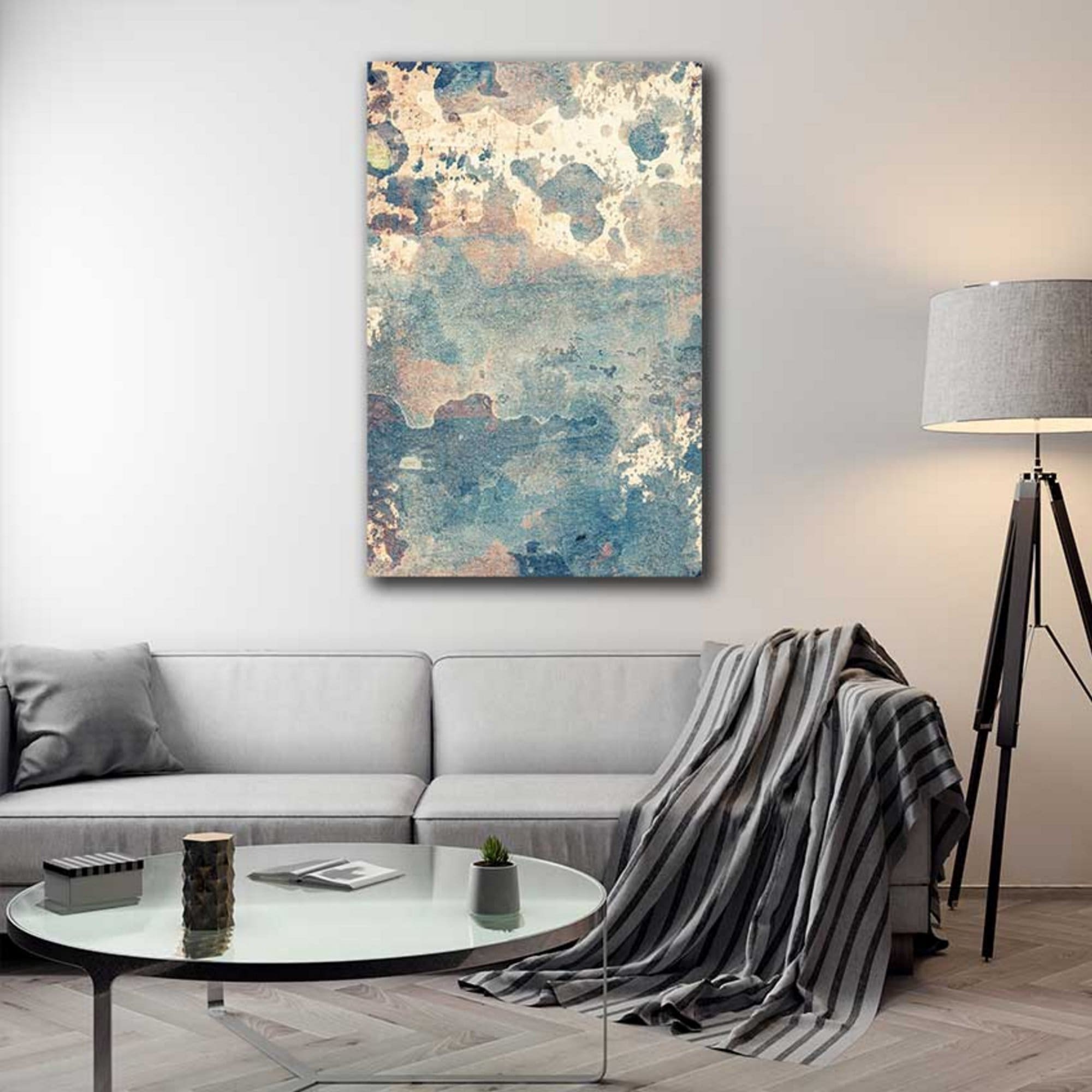 Οι πίνακες ζωγραφικής με διάφορα θέματα, αλλά και γνωστών ζωγράφων, μπορούν να ταιριάξουν εύκολα στο χώρο σας, όπως και ο Πίνακας Ζωγραφικής Μπλε και Μπεζ σε Φθαρμένο Τοίχο – Decotek 220681
