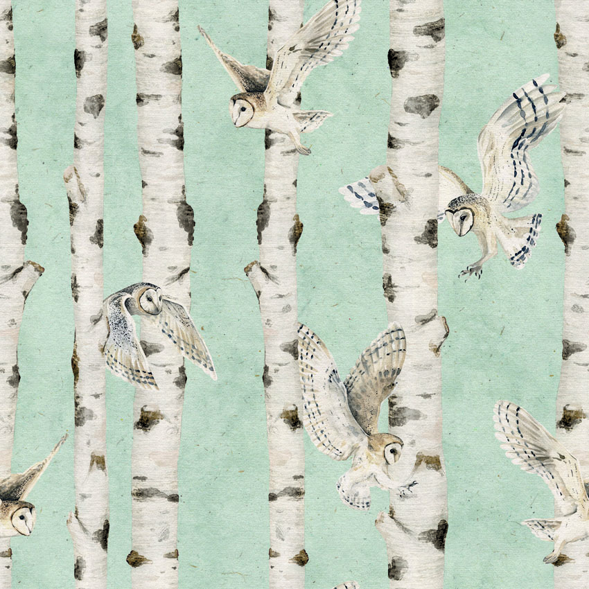 Φωτοταπετσαρία Birch and Owls, Blue – Kikki Belle 60615