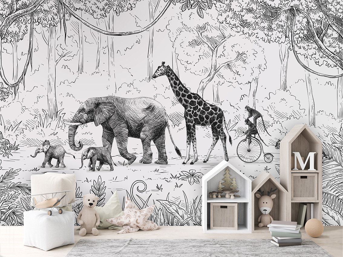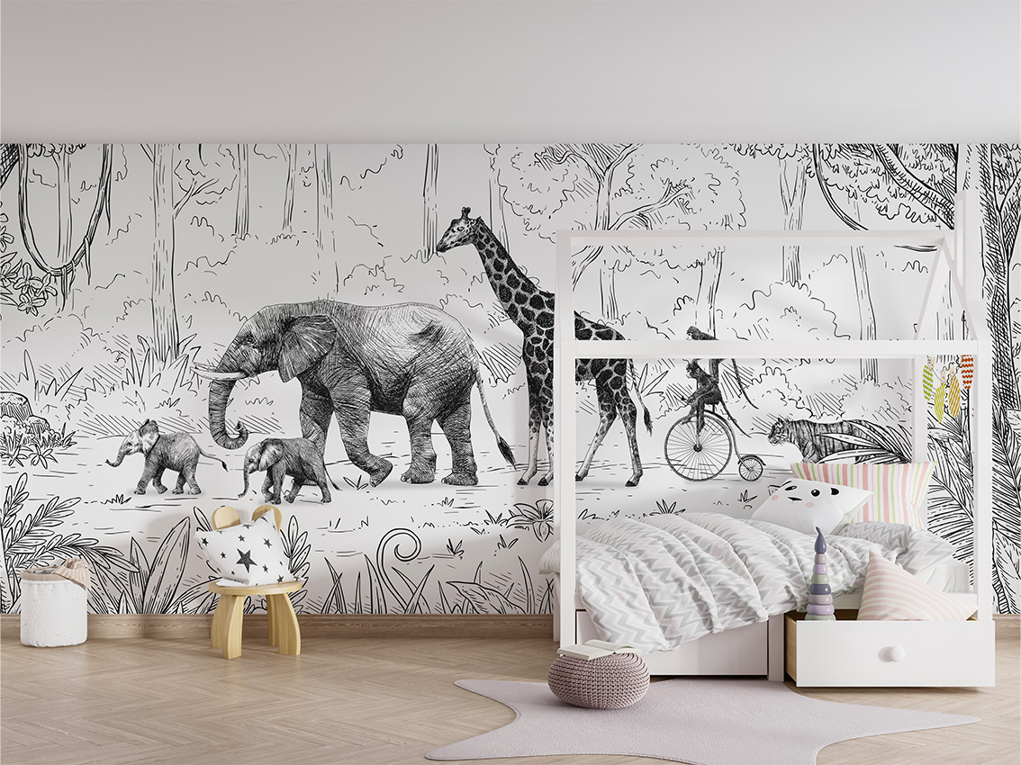 Φωτοταπετσαρία Παρέλαση στο δάσος Ασπρόμαυρο – Kikki Belle 60304