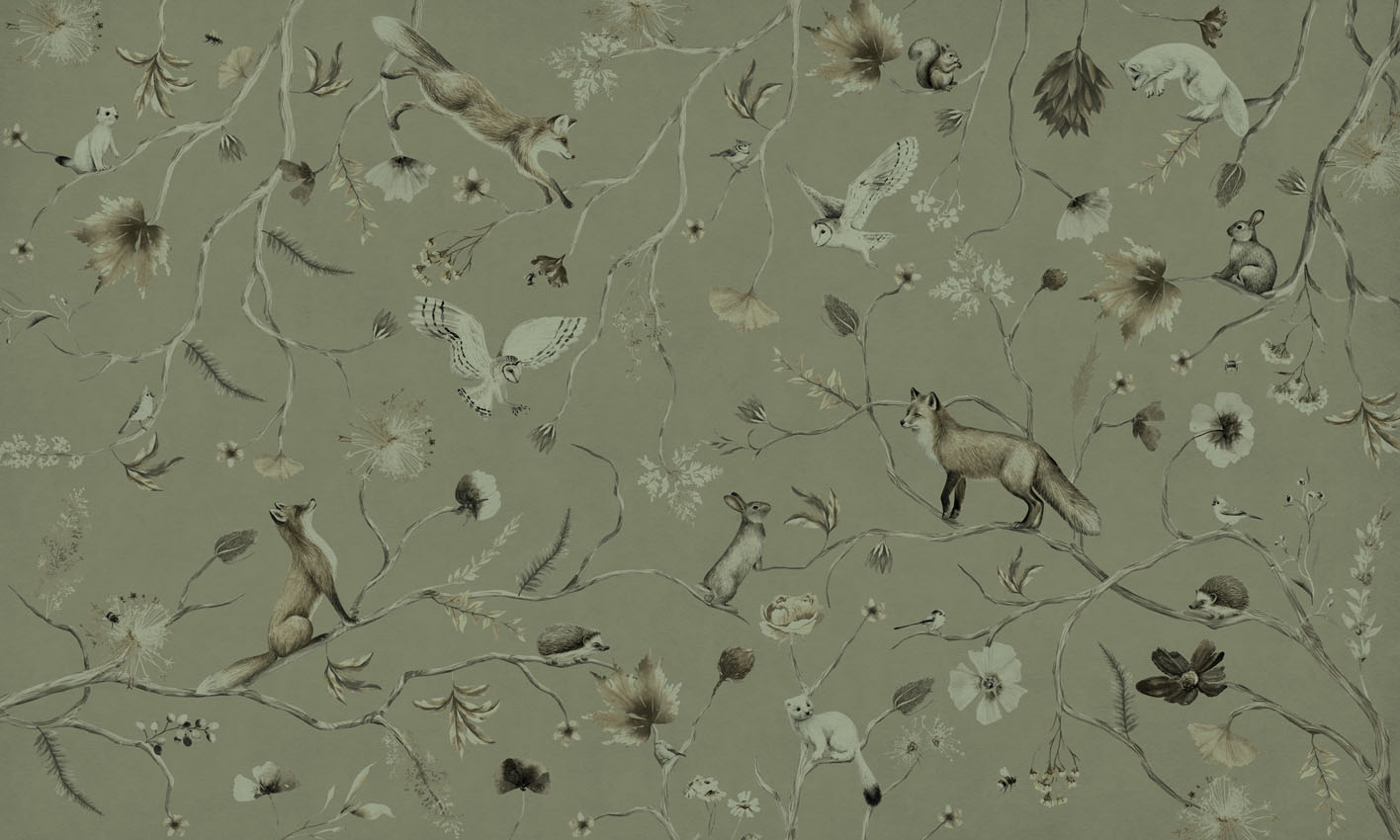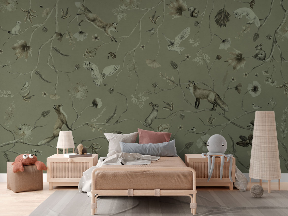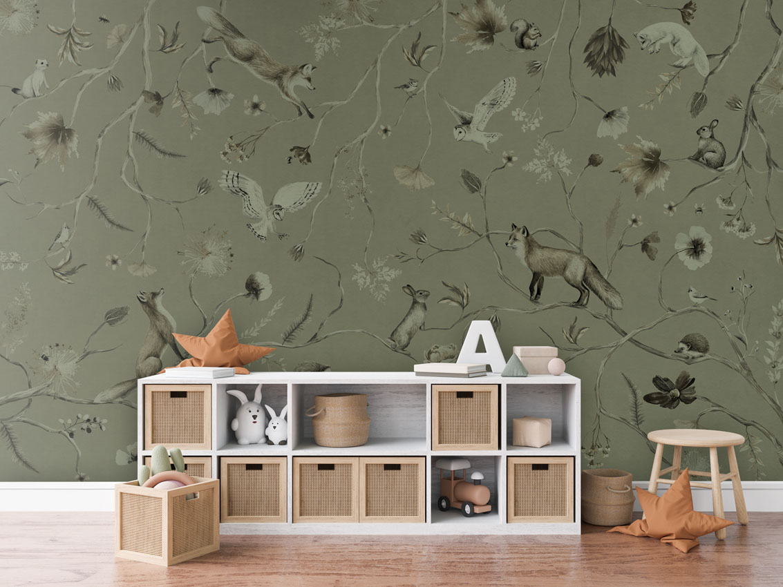 Φωτοταπετσαρία Playful Forest, monochrome green – Kikki Belle 60881