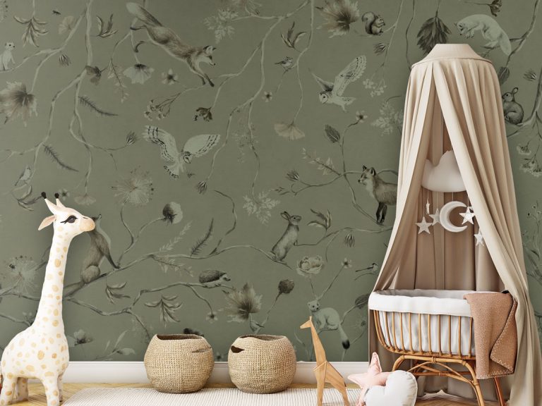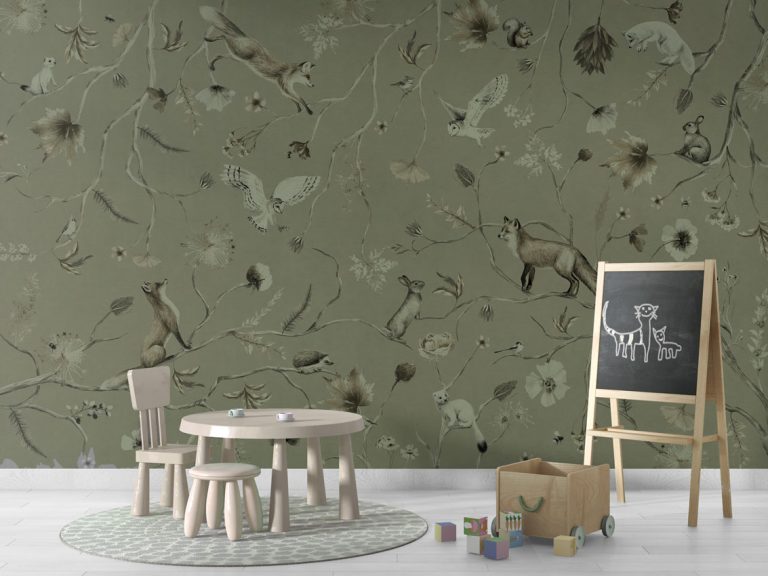 Φωτοταπετσαρία Playful Forest, monochrome green – Kikki Belle 60881