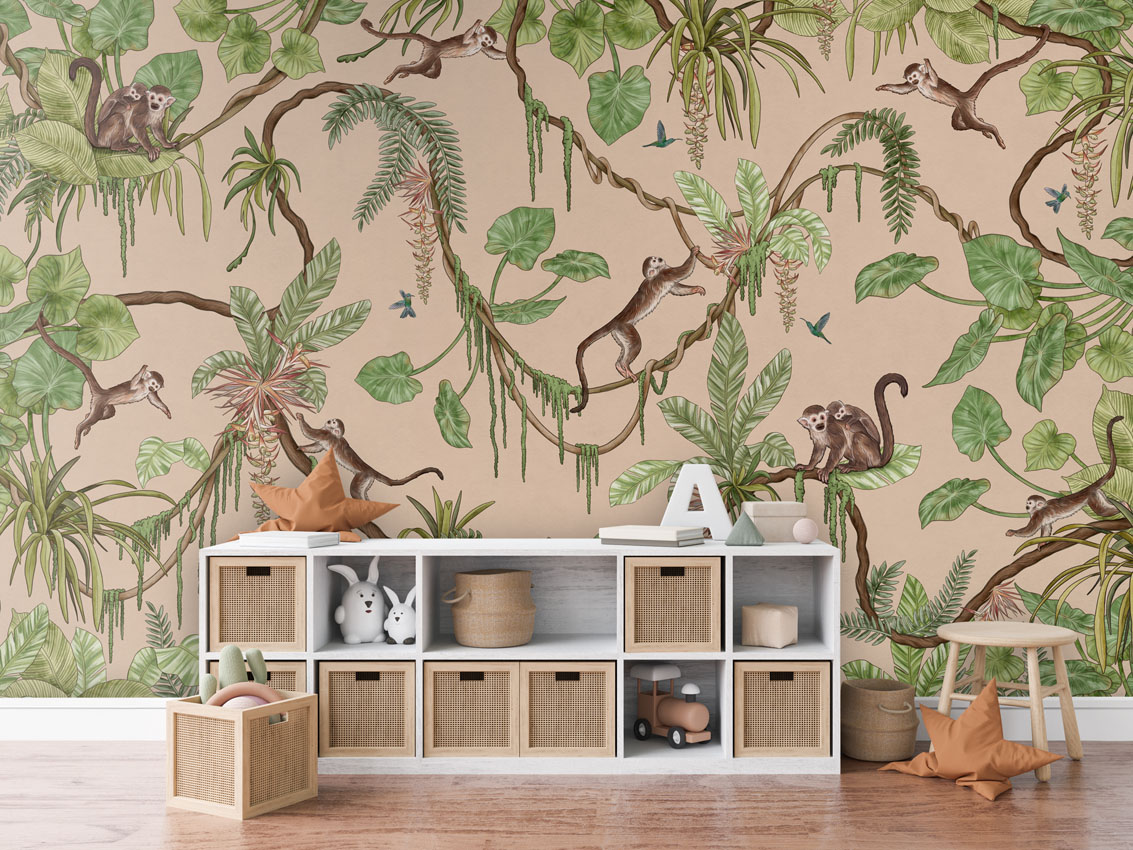 Φωτοταπετσαρία Playful Monkeys, beige – Kikki Belle 60885