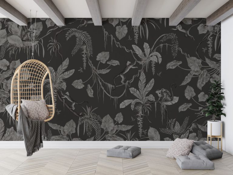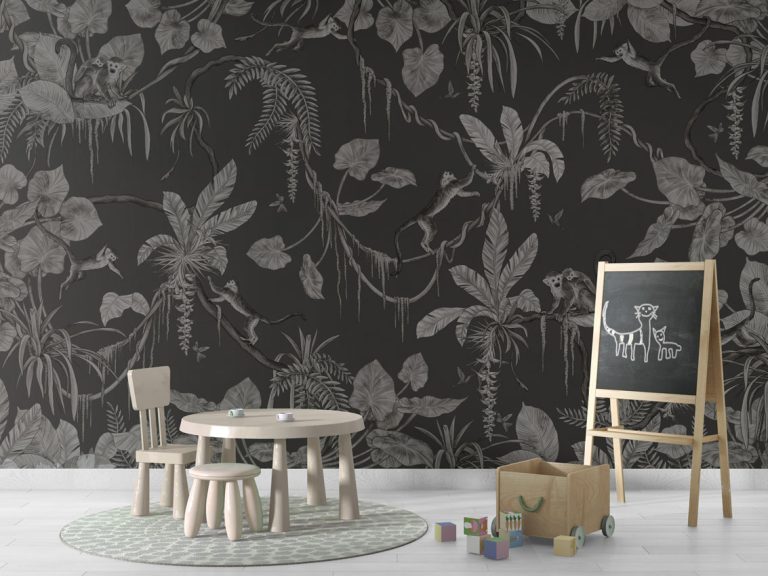 Φωτοταπετσαρία Playful Monkeys, monochrome black – Kikki Belle 60887