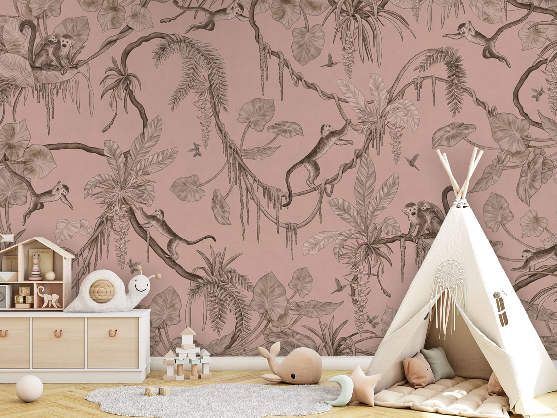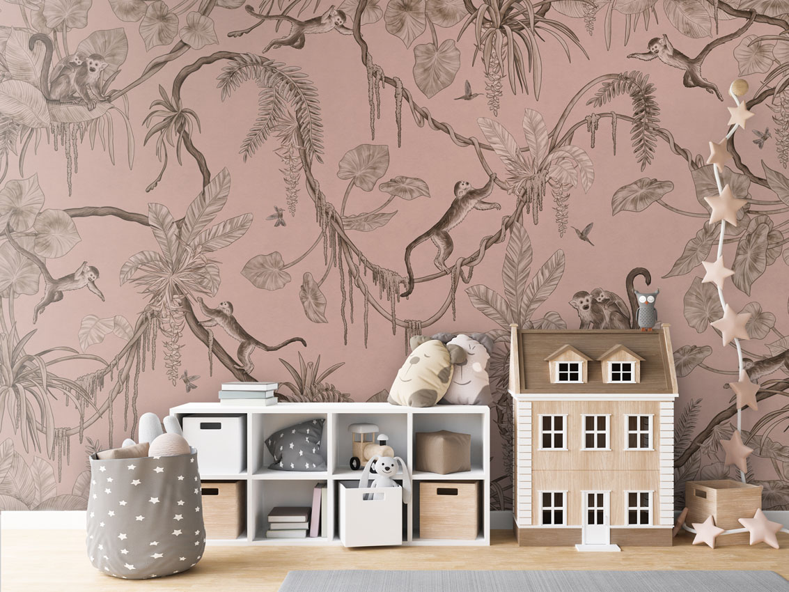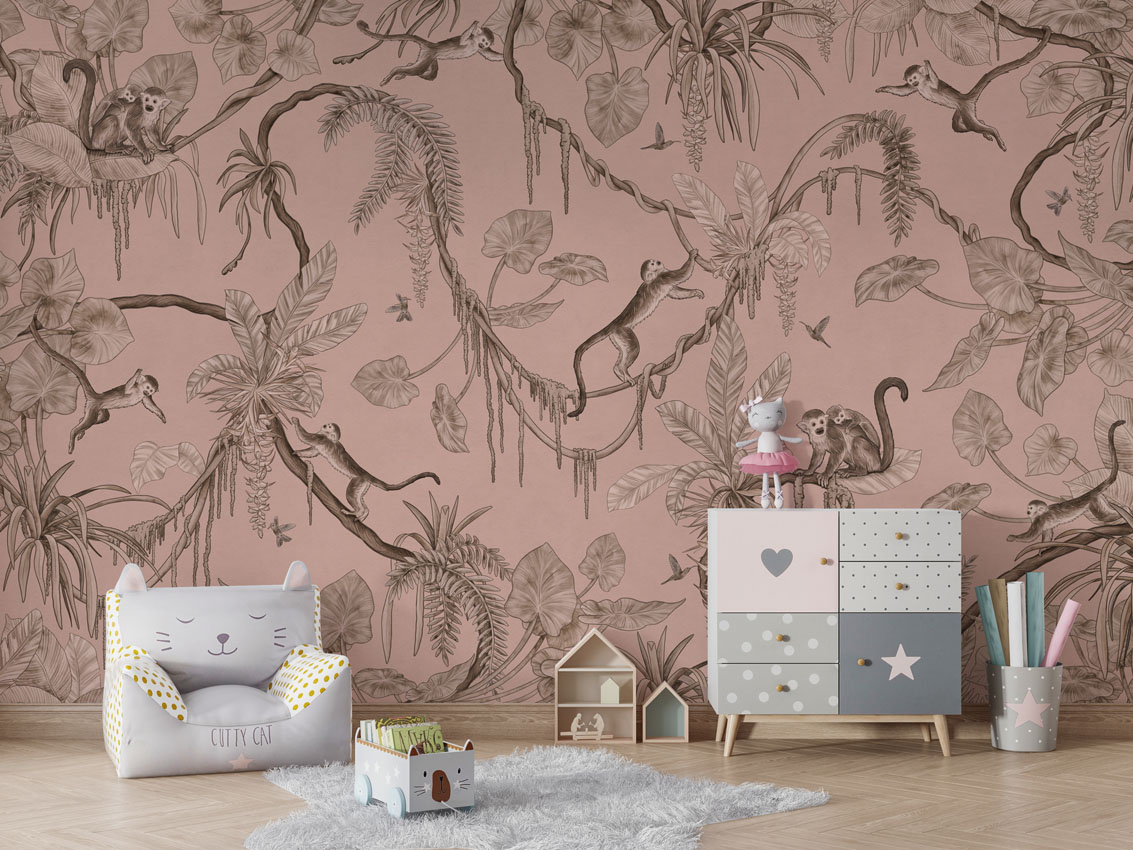 Φωτοταπετσαρία Playful Monkeys, monochrome pink – Kikki Belle 60890