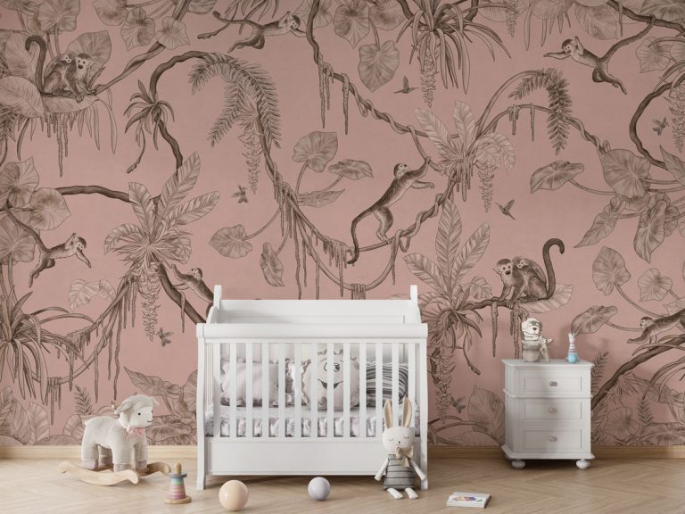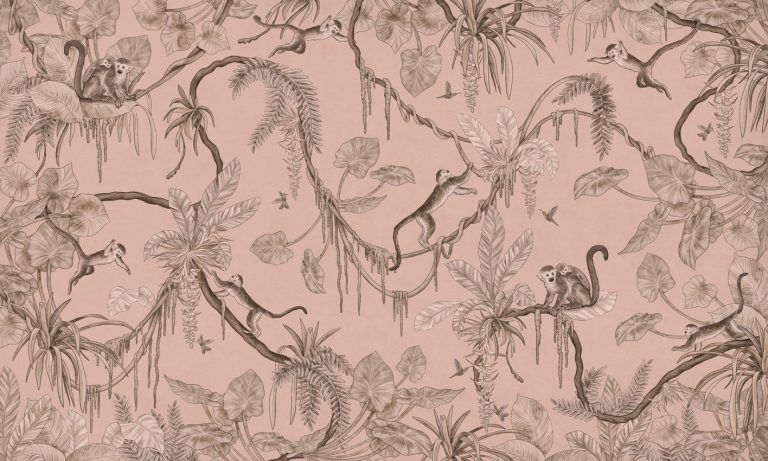 Φωτοταπετσαρία Playful Monkeys, monochrome pink – Kikki Belle 60890