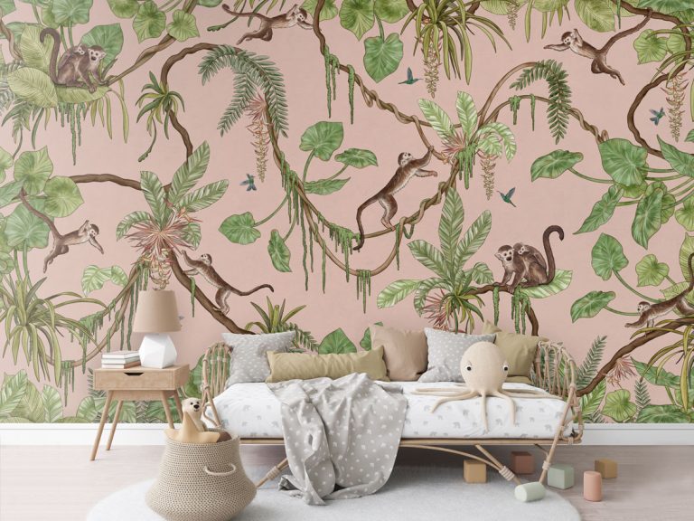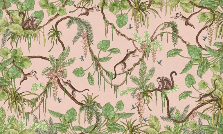 Φωτοταπετσαρία Playful Monkeys, pink – Kikki Belle 60891