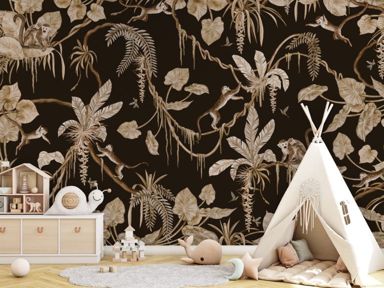 Φωτοταπετσαρία Playful Monkeys, vintage black – Kikki Belle 60893