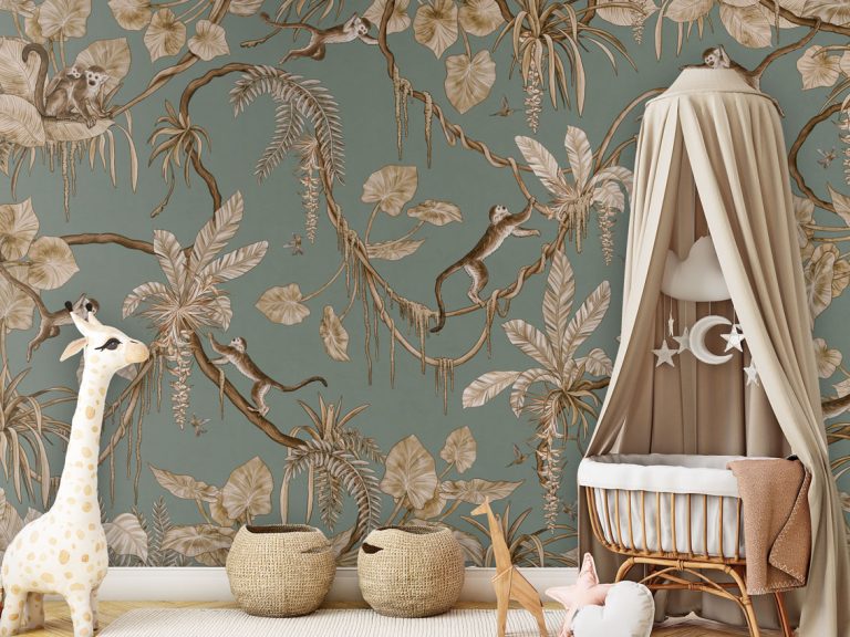 Φωτοταπετσαρία Playful Monkeys, vintage green – Kikki Belle 60895