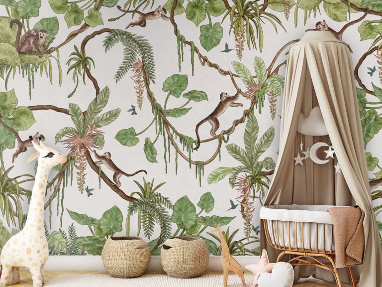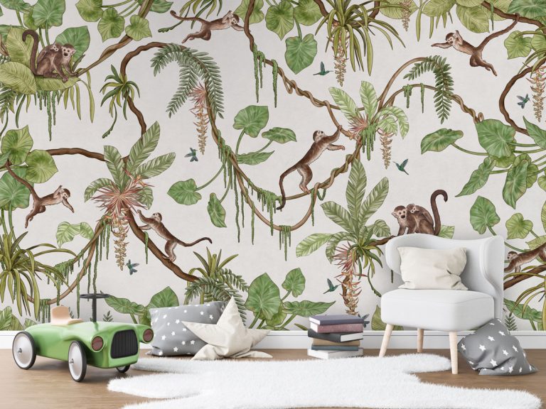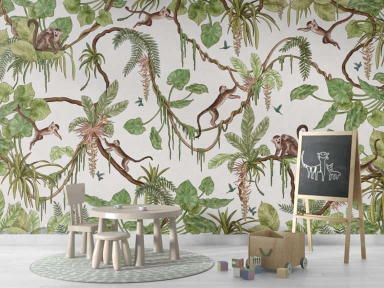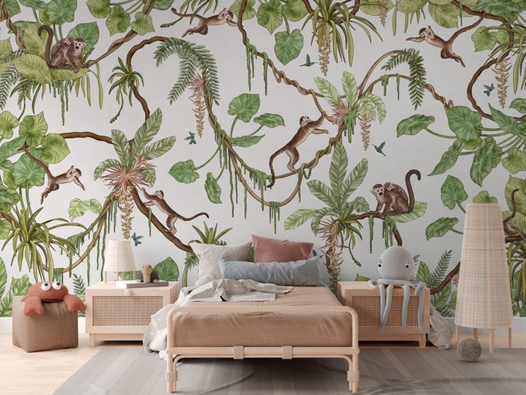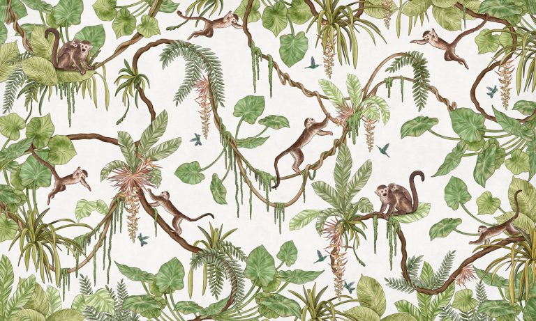 Φωτοταπετσαρία Playful Monkeys, white – Kikki Belle 60898
