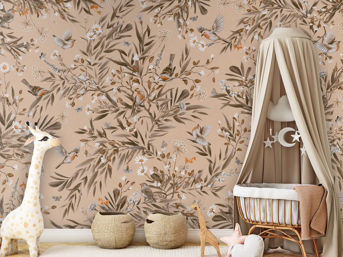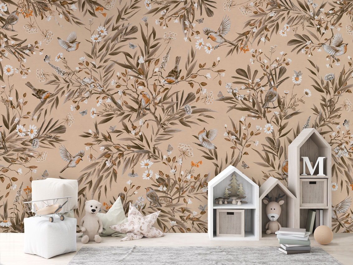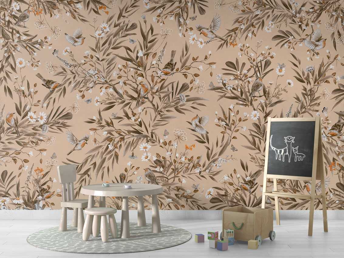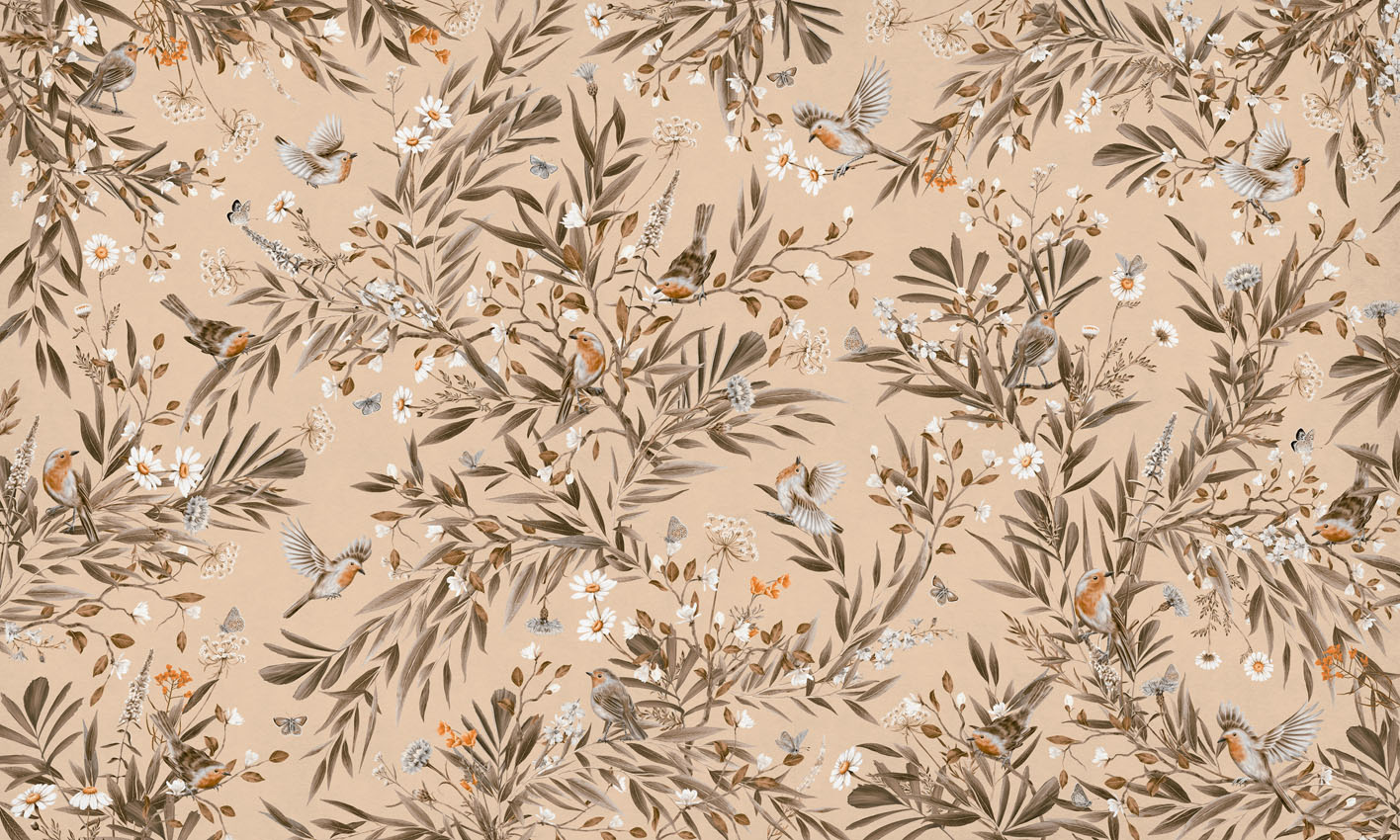 Φωτοταπετσαρία Playful Robins, vintage beige – Kikki Belle 60906
