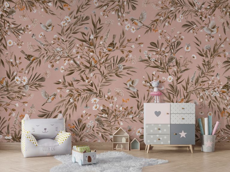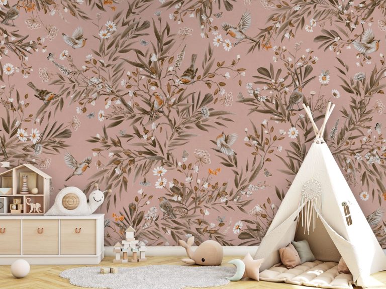 Φωτοταπετσαρία Playful Robins, vintage pink – Kikki Belle 60910