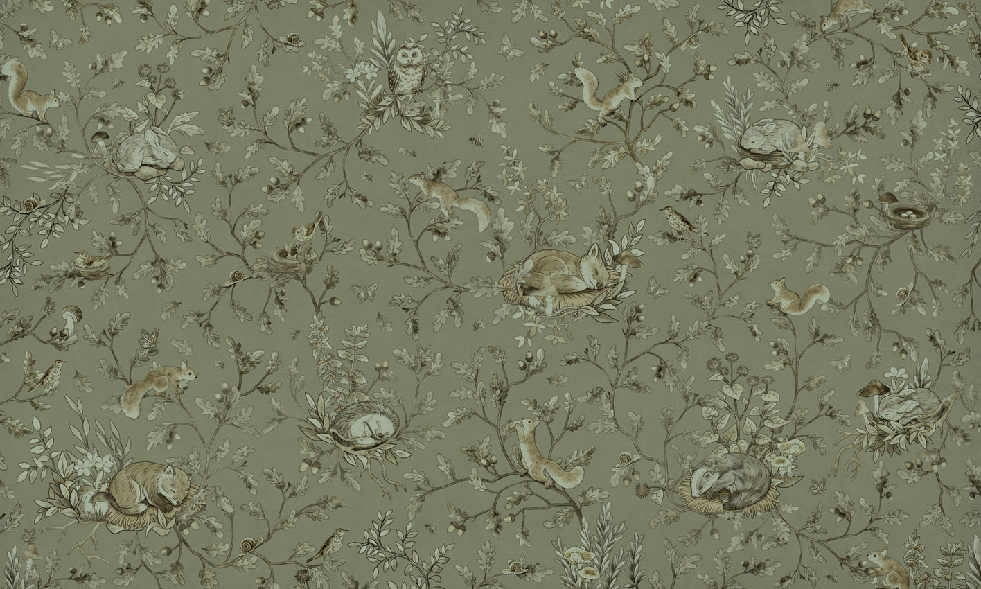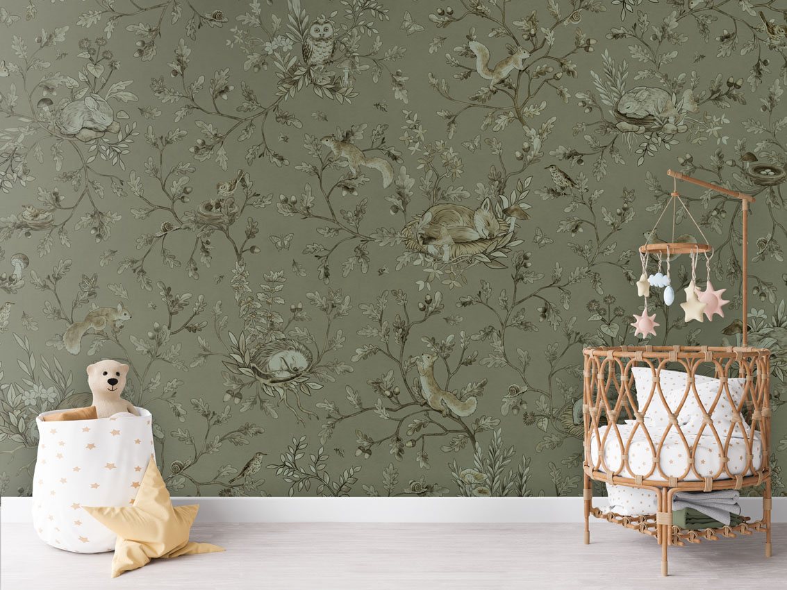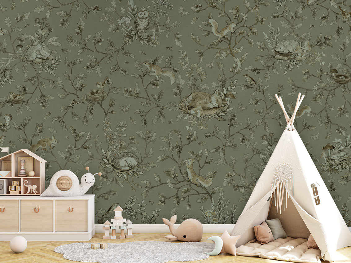Φωτοταπετσαρία Playful Woods, monochrome green – Kikki Belle 60917
