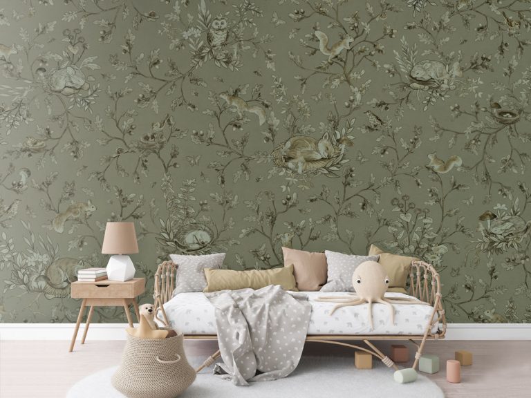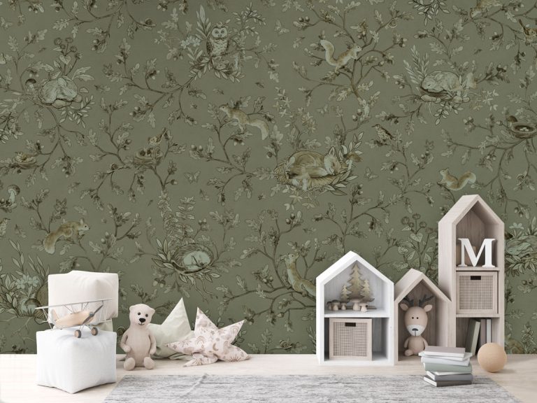 Φωτοταπετσαρία Playful Woods, monochrome green – Kikki Belle 60917